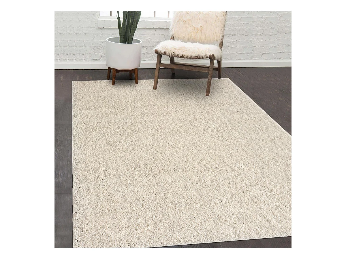 Tapis shaggy 200x280 rectangle tissé crème motif uni LYN4 UNILA