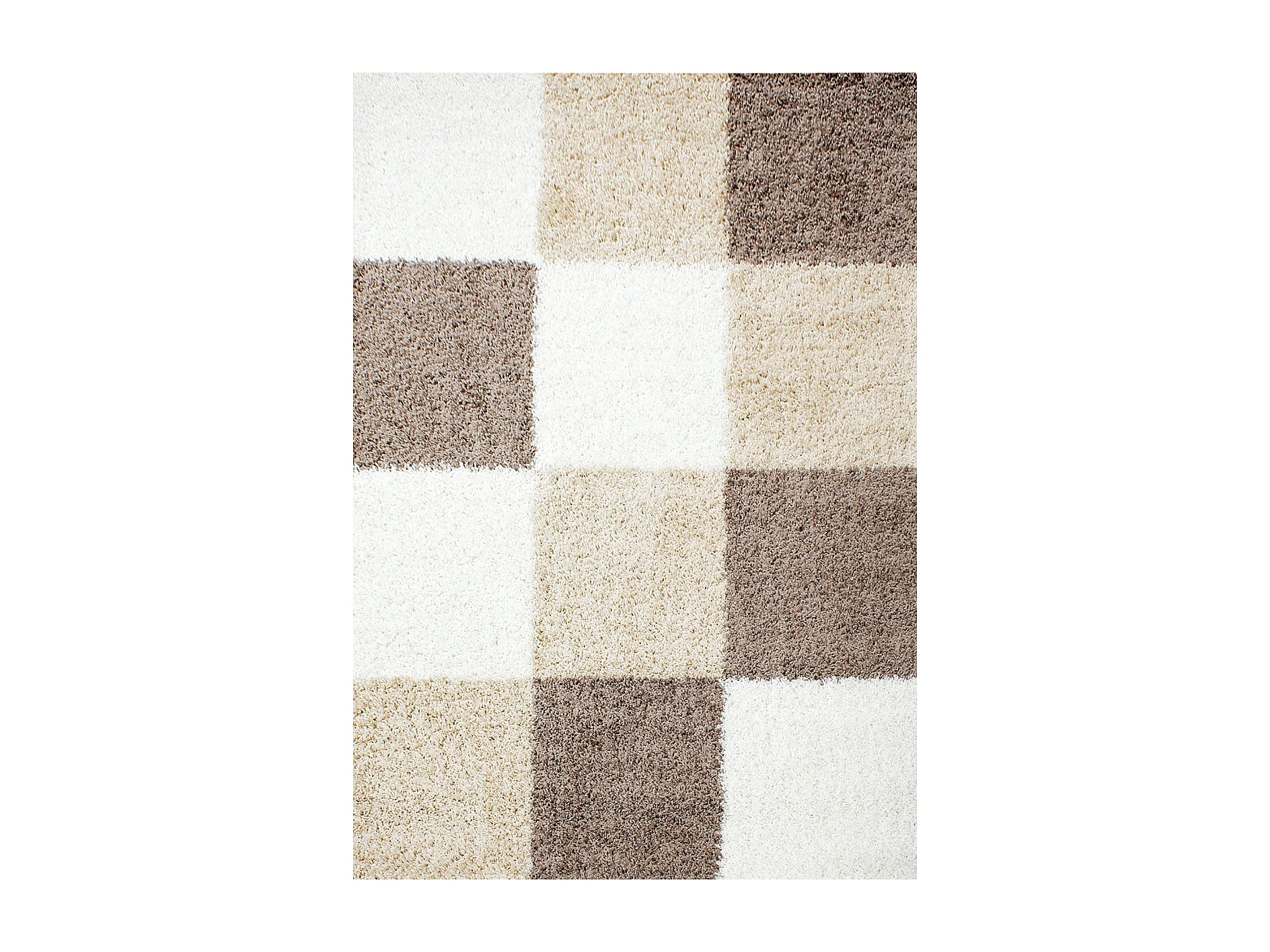 Tapis poils longs shaggy 200x290 rectangle tissé beige et marron motif damier
