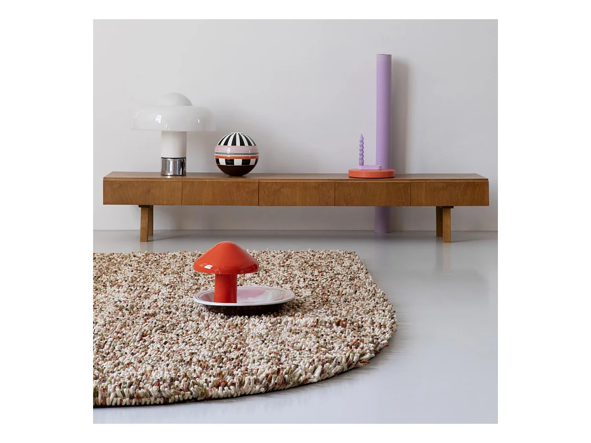 Tapis shaggy Ø140cm rond fait main marron motif uni MALAIDORY