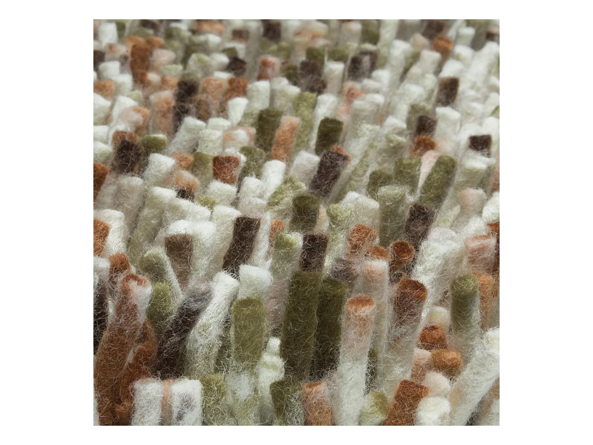 Tapis shaggy 250x350 rectangle tissé crème et marron en laine motif faux uni