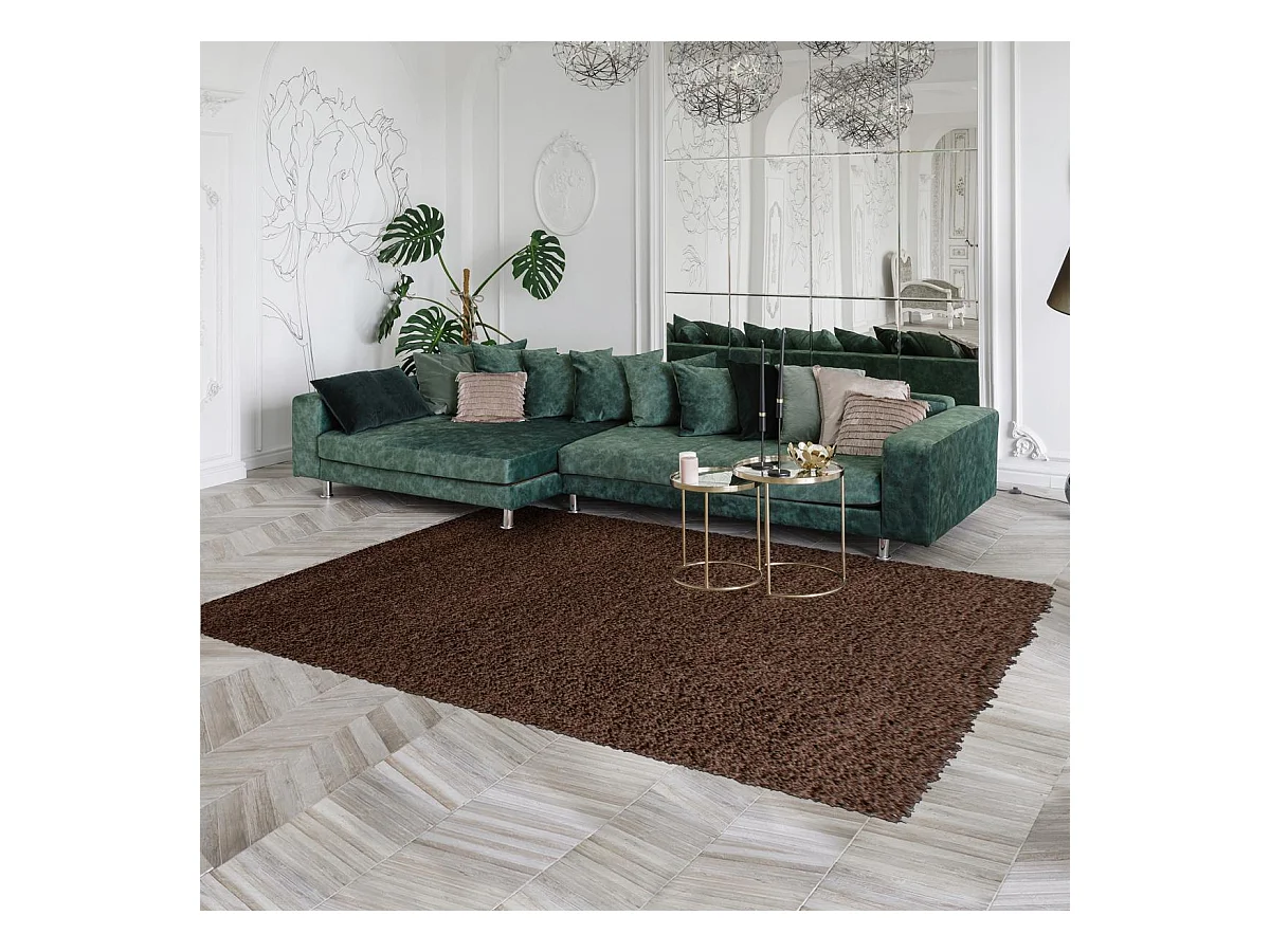 Tapis shaggy 200x290 rectangle tissé marron motif uni SPYGIP