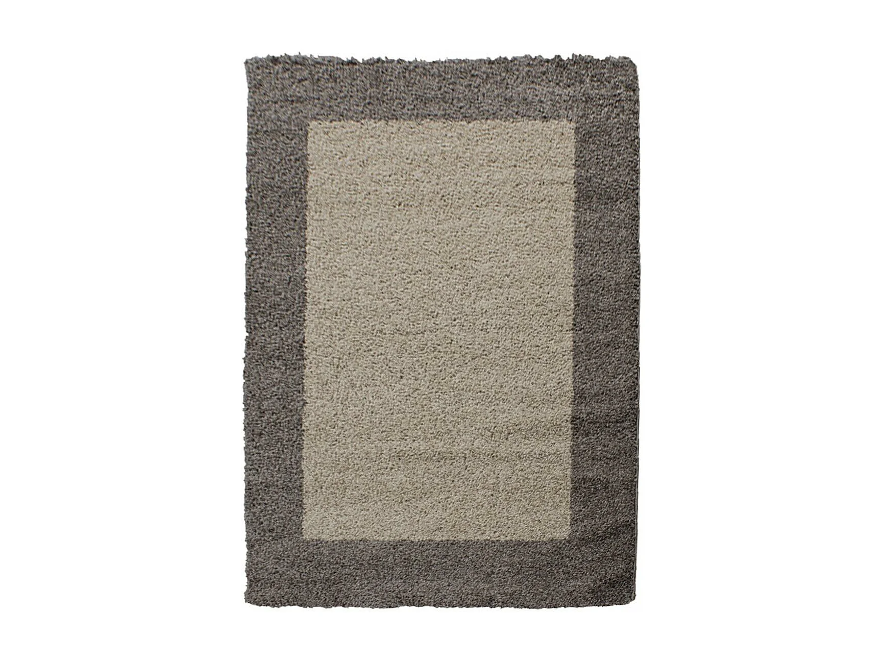 Tapis poils longs shaggy 80x150 rectangle tissé beige et taupe motif simple