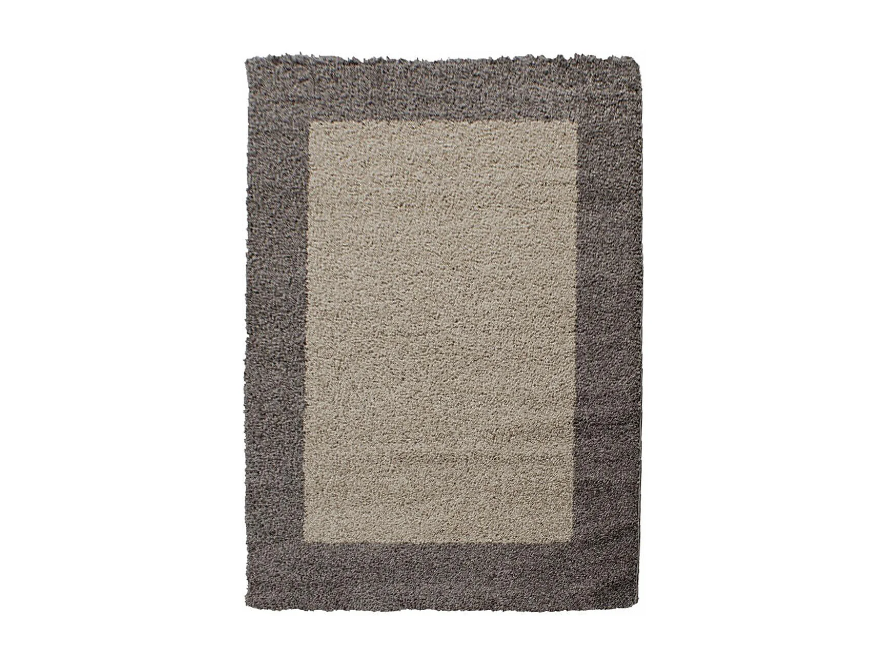 Tapis poils longs shaggy 80x250 rectangle tissé beige et taupe motif simple