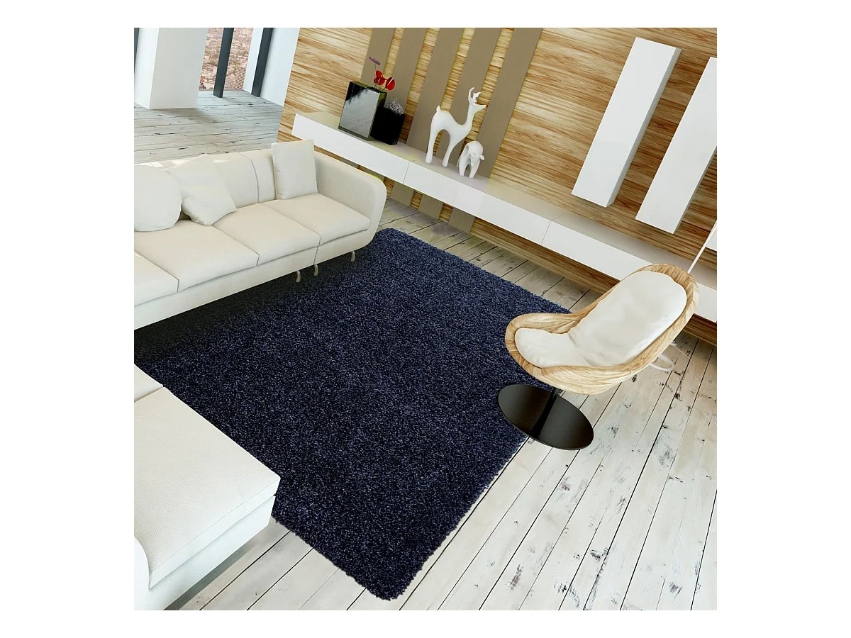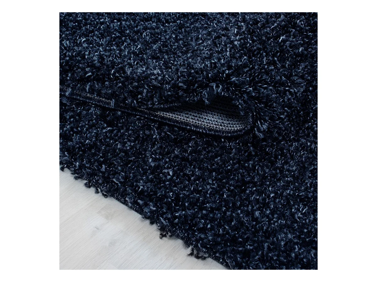 Tapis poils longs shaggy 80x250 rectangle tissé bleu marine motif uni UNI L