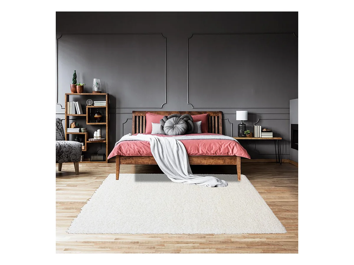 Tapis shaggy 160x230 rectangle tissé crème motif uni SG LOCA
