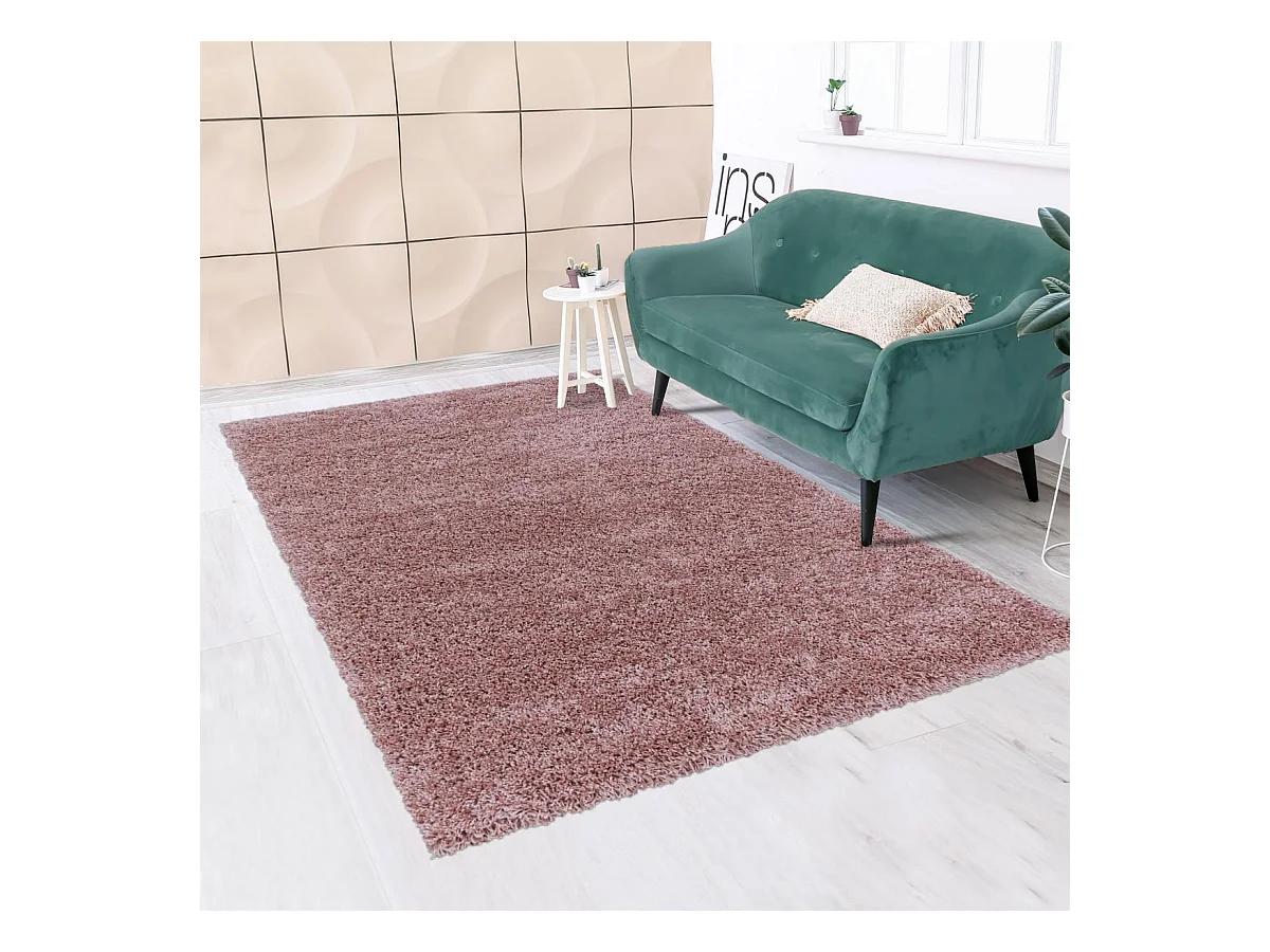 Tapis shaggy 160x230 rectangle tissé rose motif uni FLEURAN
