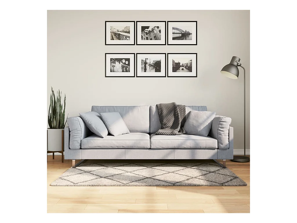Tapis shaggy à poils longs moderne beige anthracite 80x150