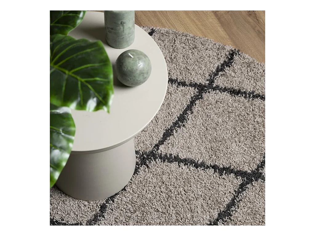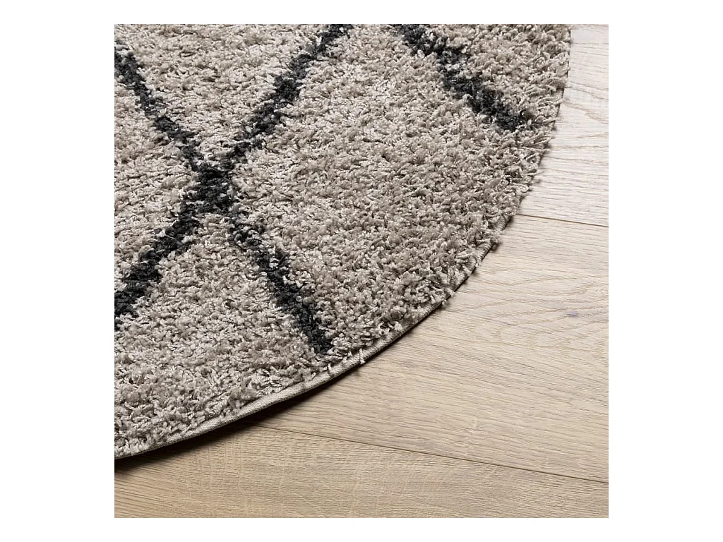 Tapis shaggy à poils longs moderne beige et anthracite Ø 120cm