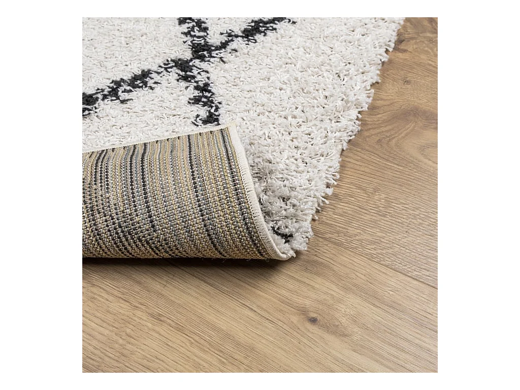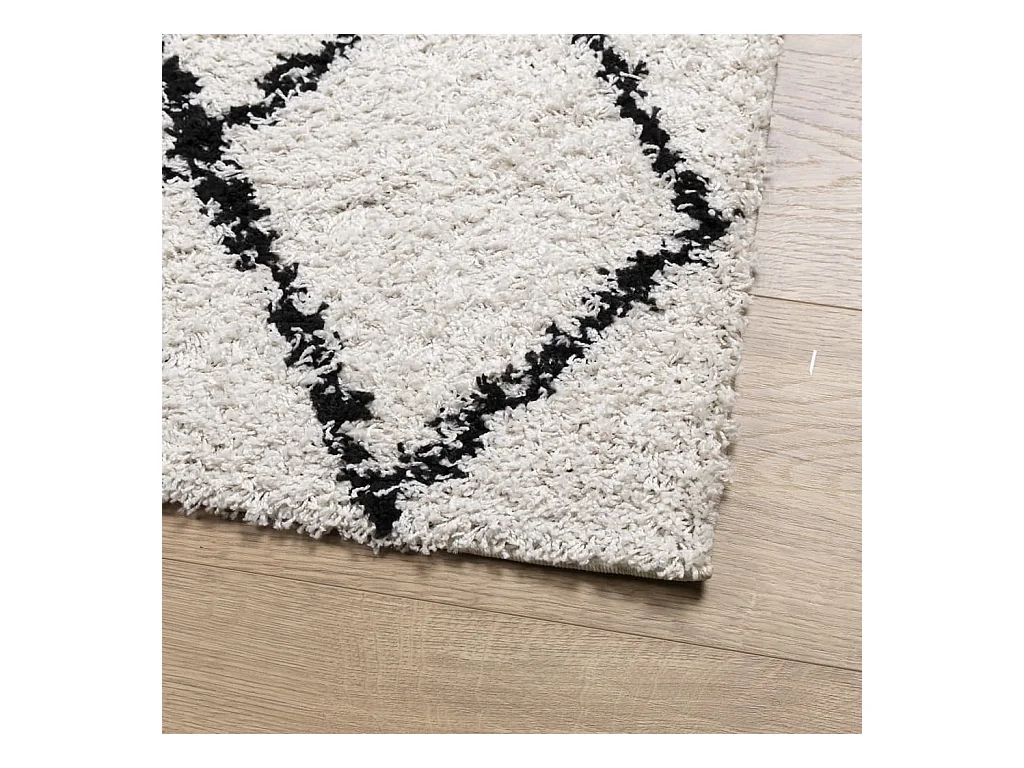 Tapis shaggy à poils longs moderne crème et noir 100x200