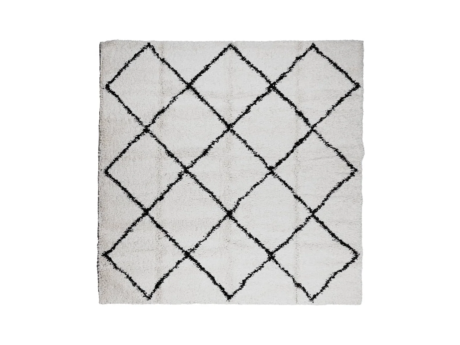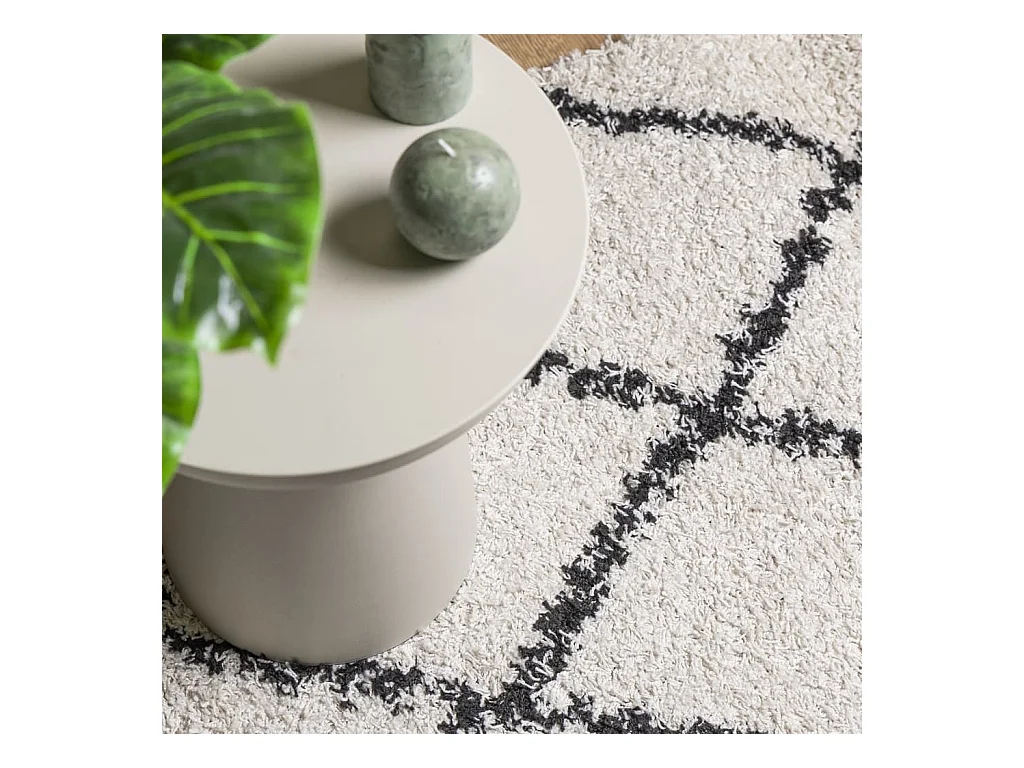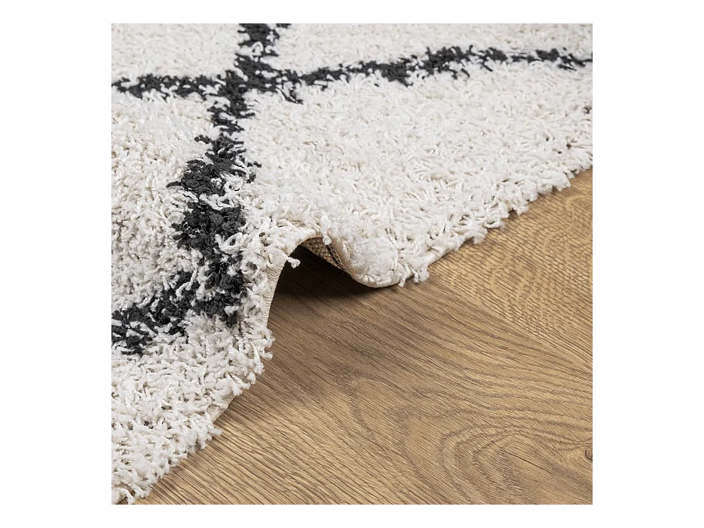 Tapis shaggy à poils longs moderne crème et noir 120x120