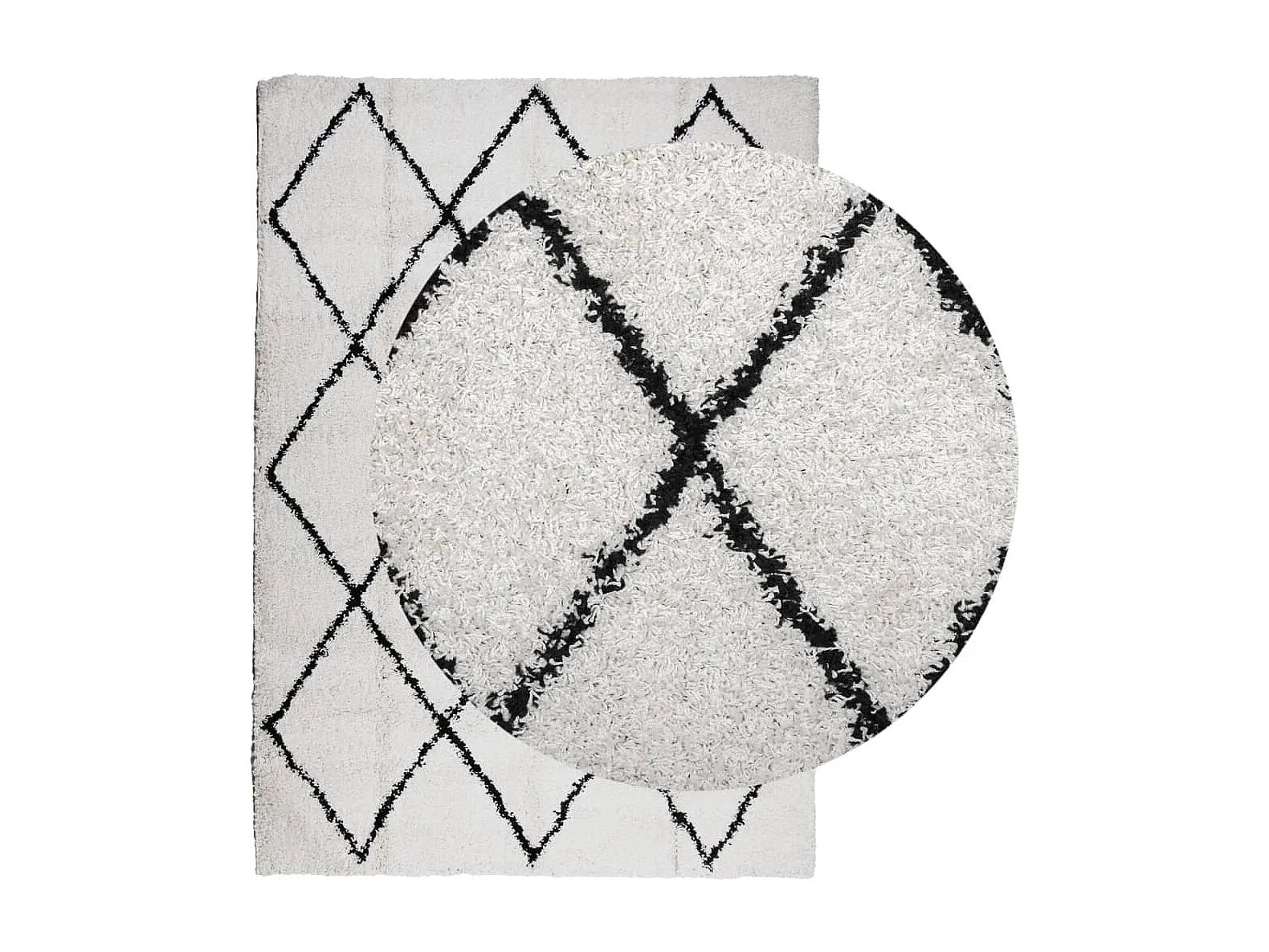Tapis shaggy à poils longs moderne crème et noir 120x170 cm