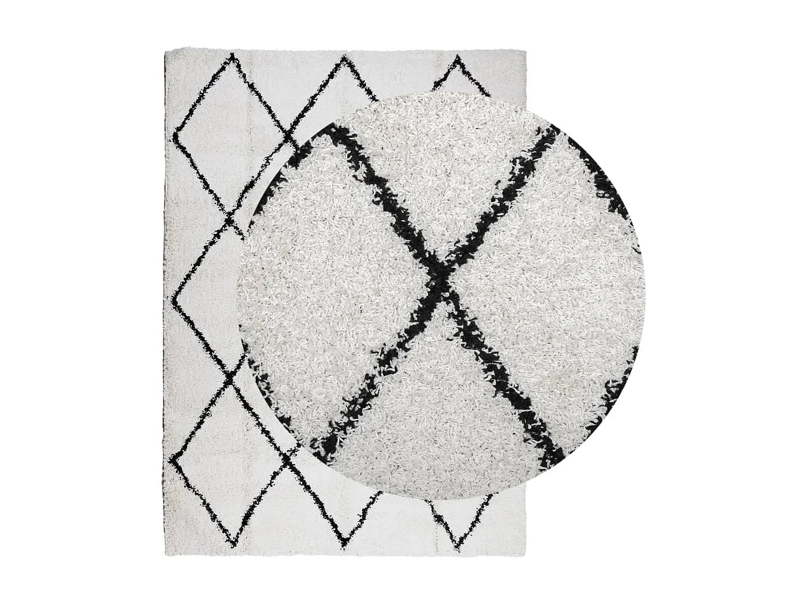 Tapis shaggy à poils longs moderne crème et noir 200x280 cm