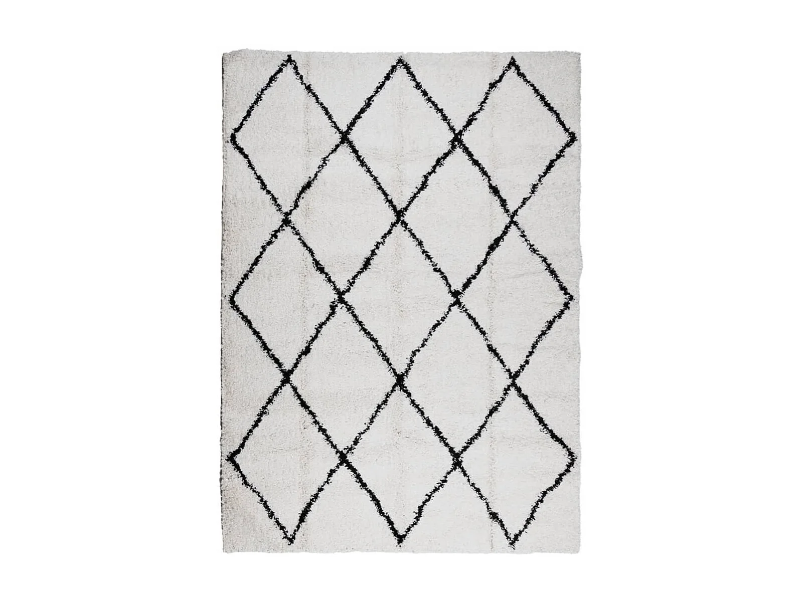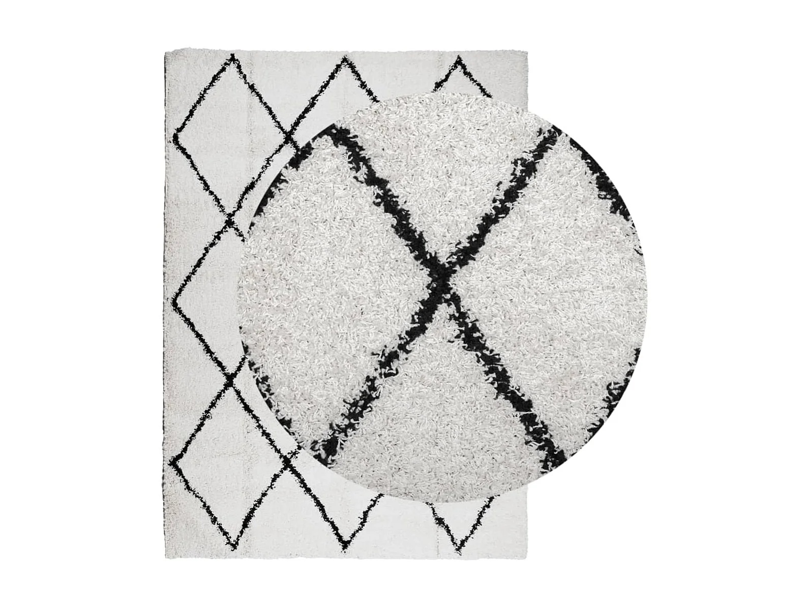 Tapis shaggy à poils longs moderne crème et noir 240x340 cm