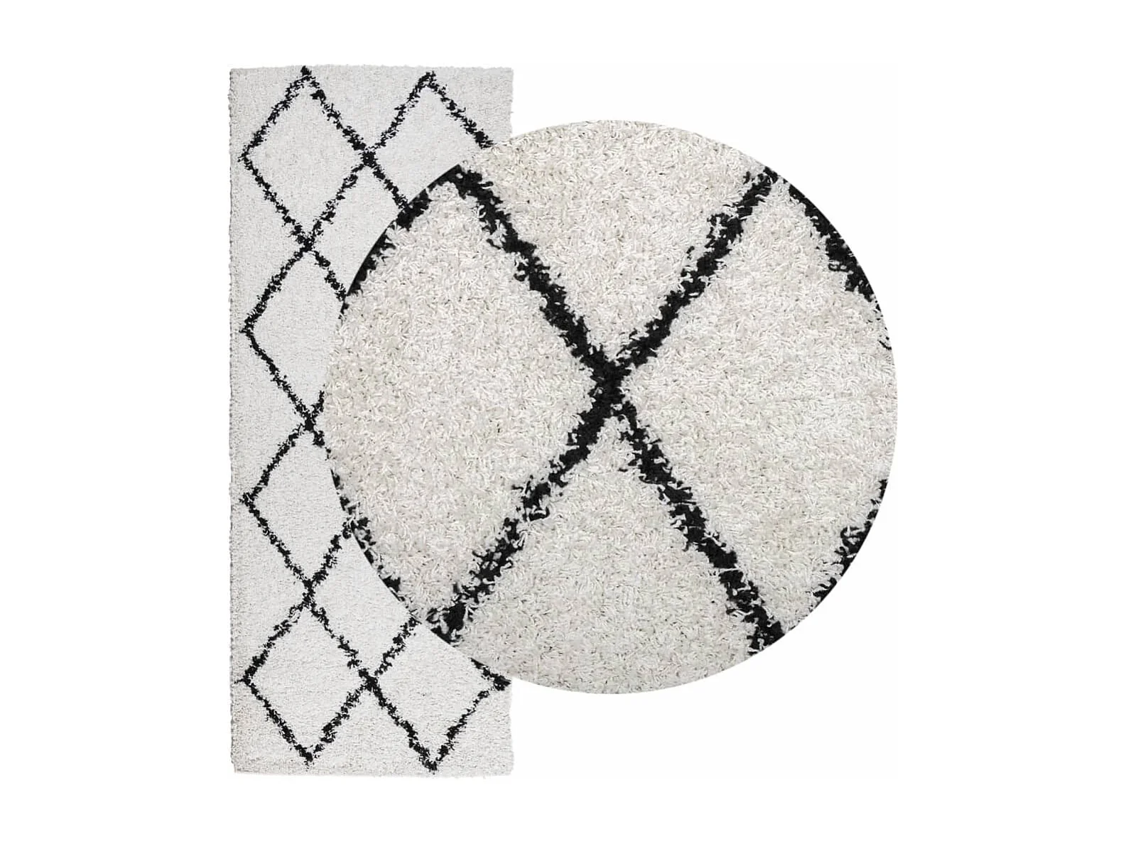 Tapis shaggy à poils longs moderne crème et noir 80x200