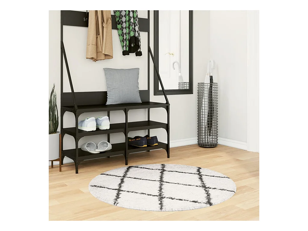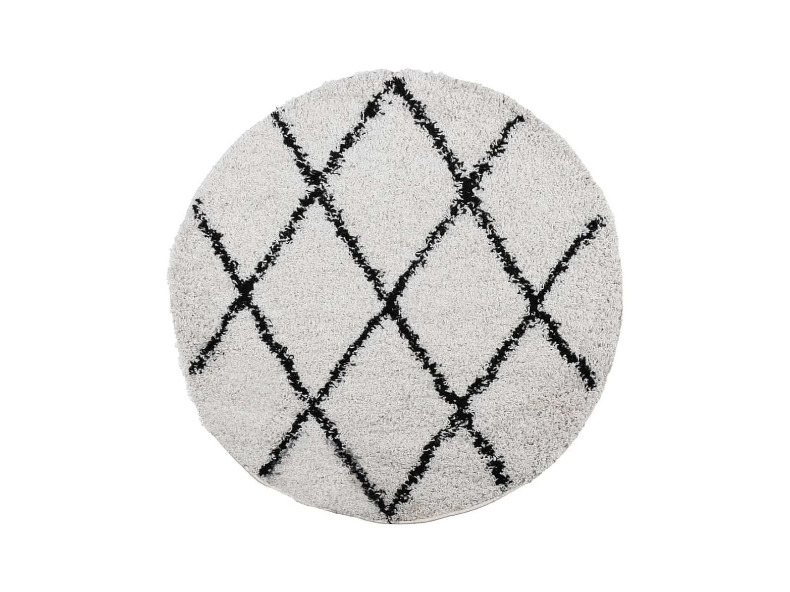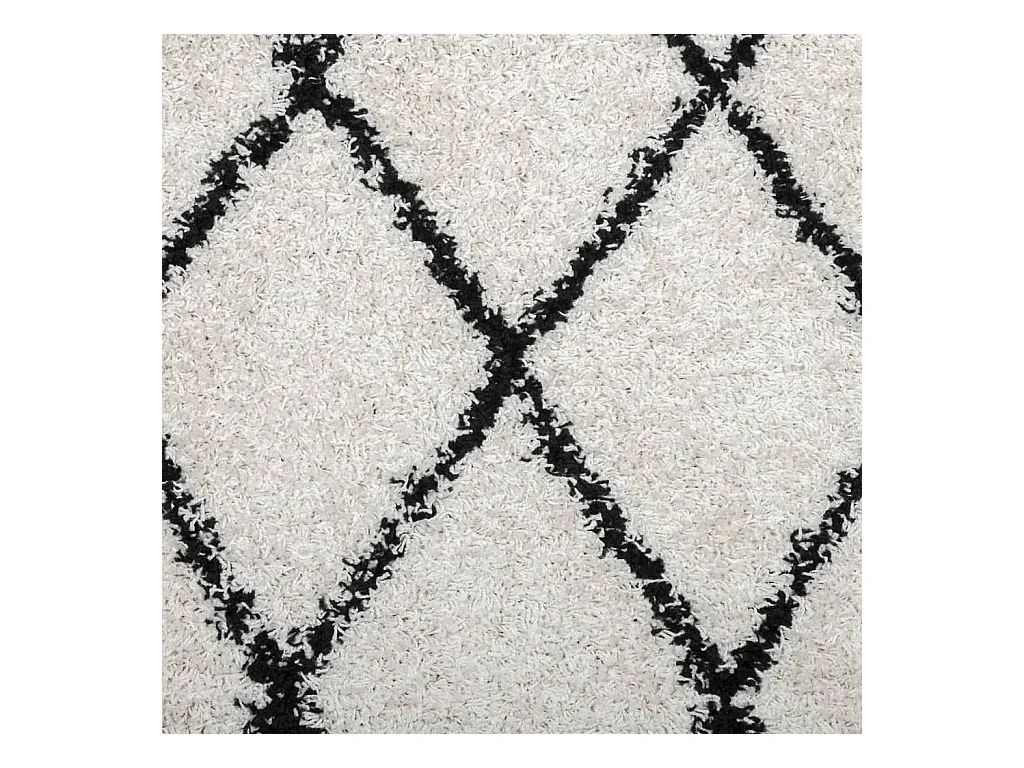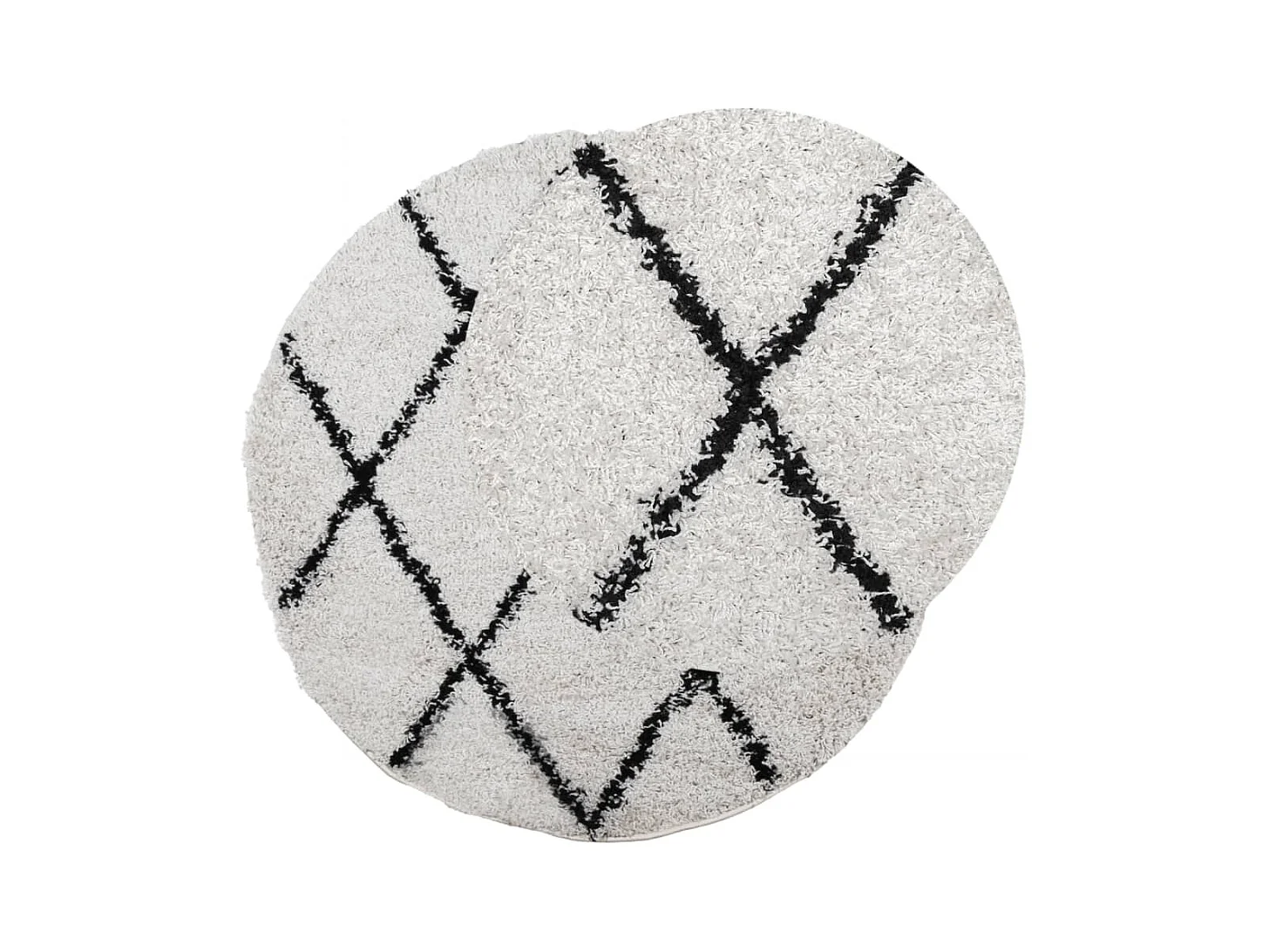 Tapis shaggy à poils longs moderne crème et noir Ø 100cm