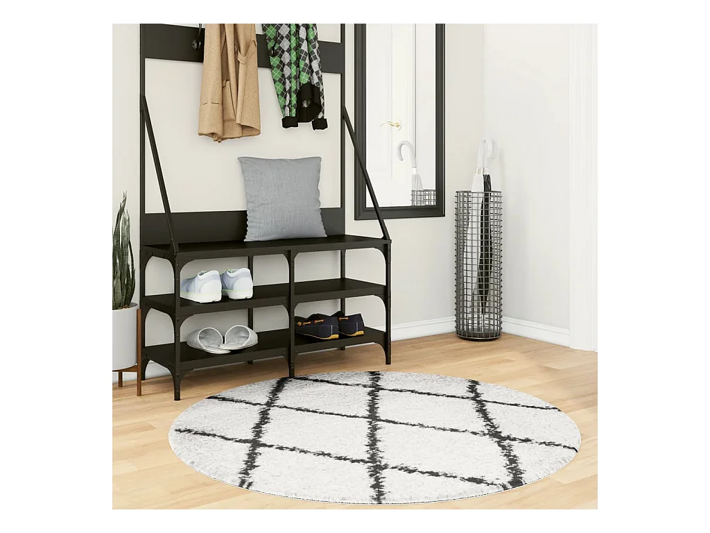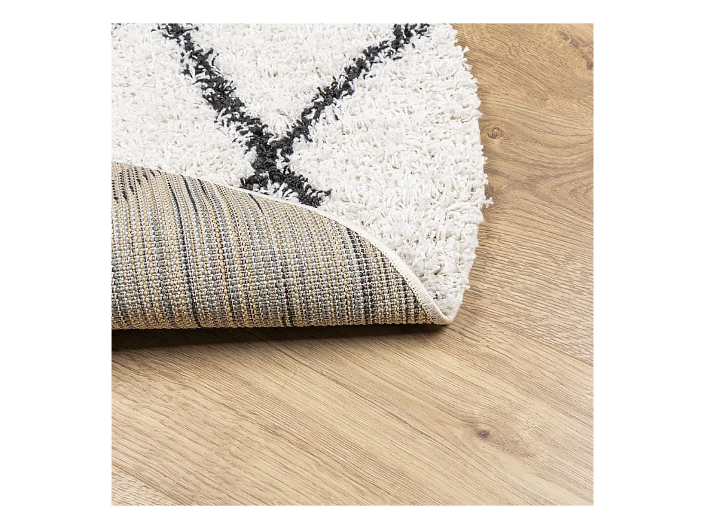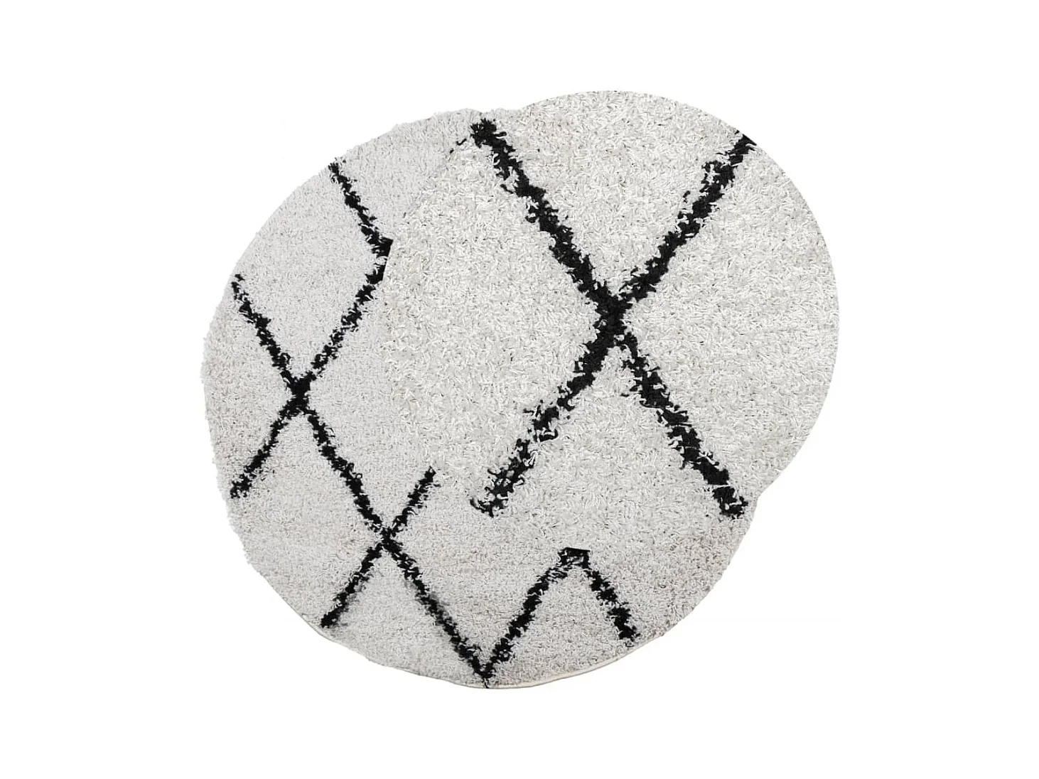 Tapis shaggy à poils longs moderne crème et noir Ø 120cm