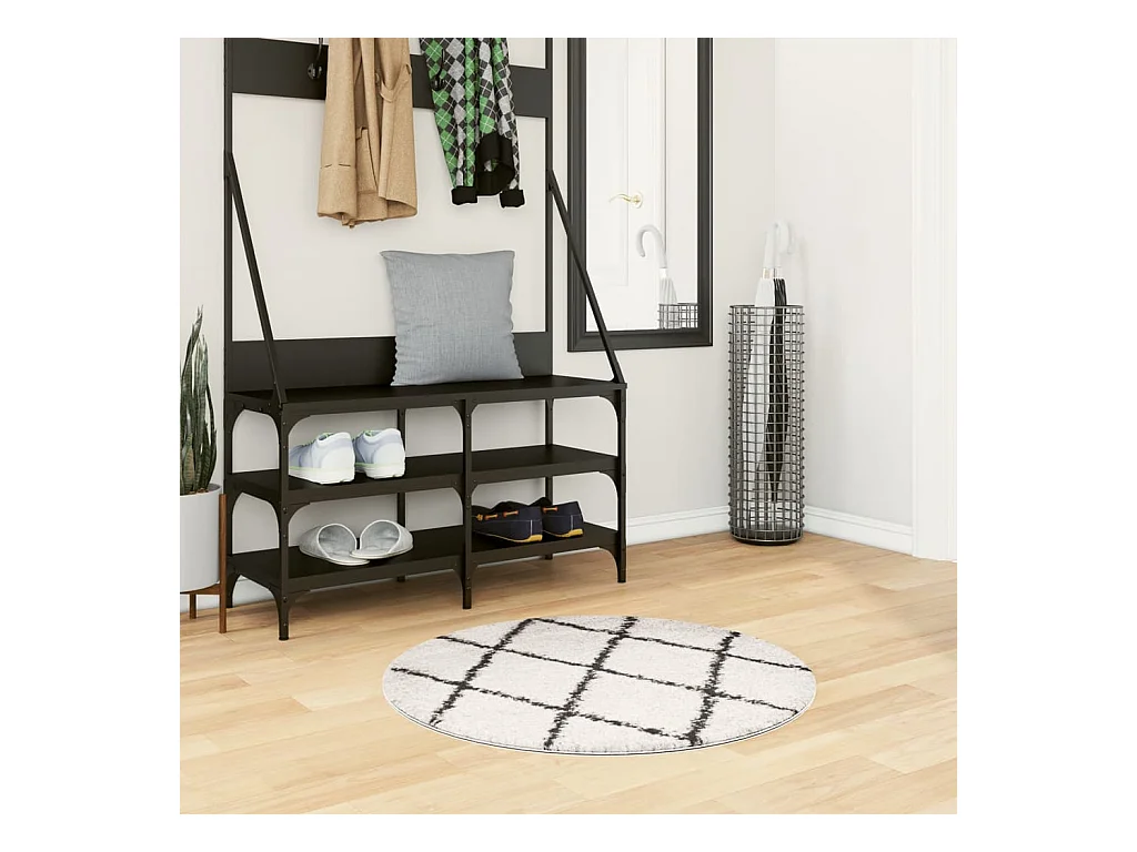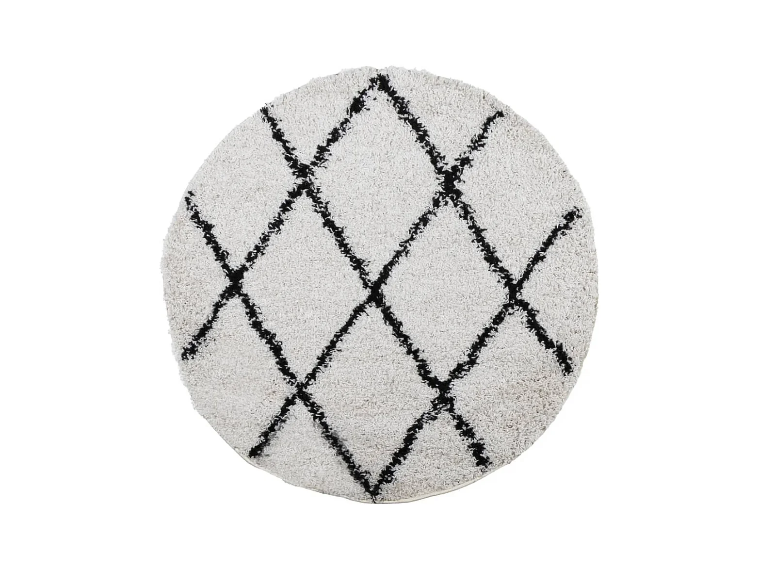 Tapis shaggy à poils longs moderne crème et noir Ø 80cm