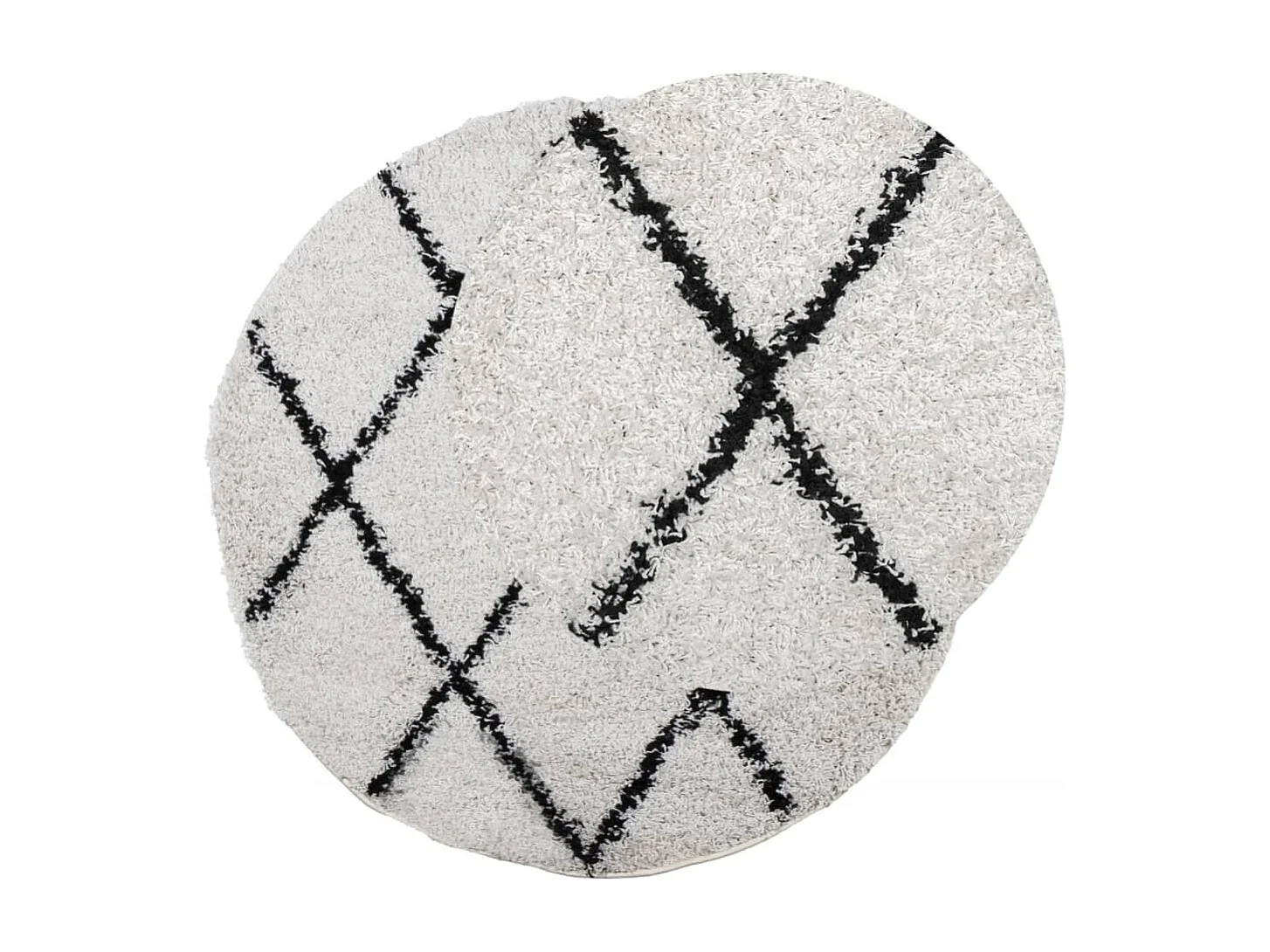 Tapis shaggy à poils longs moderne crème et noir Ø 100cm