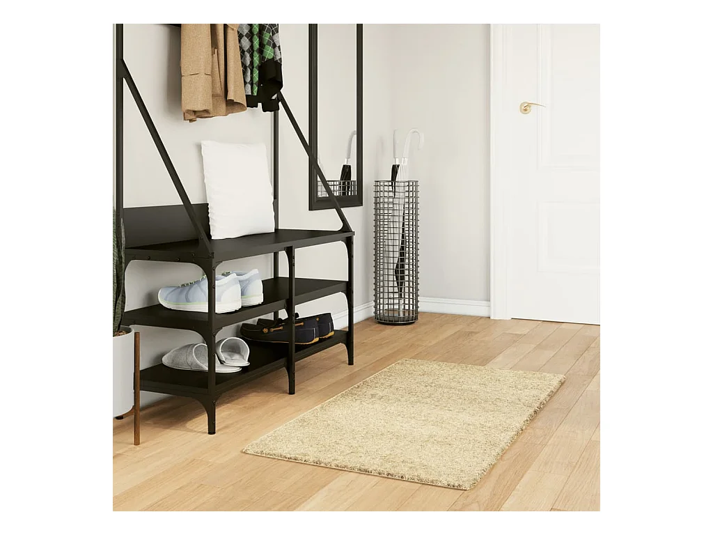Tabouret bas coffre de rangement en tissu bouclette et métal noir - Crème - EZEL