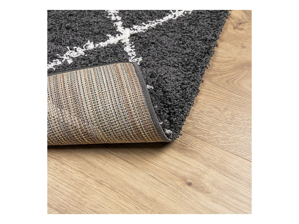 Tapis shaggy à poils longs moderne noir et crème 80x150