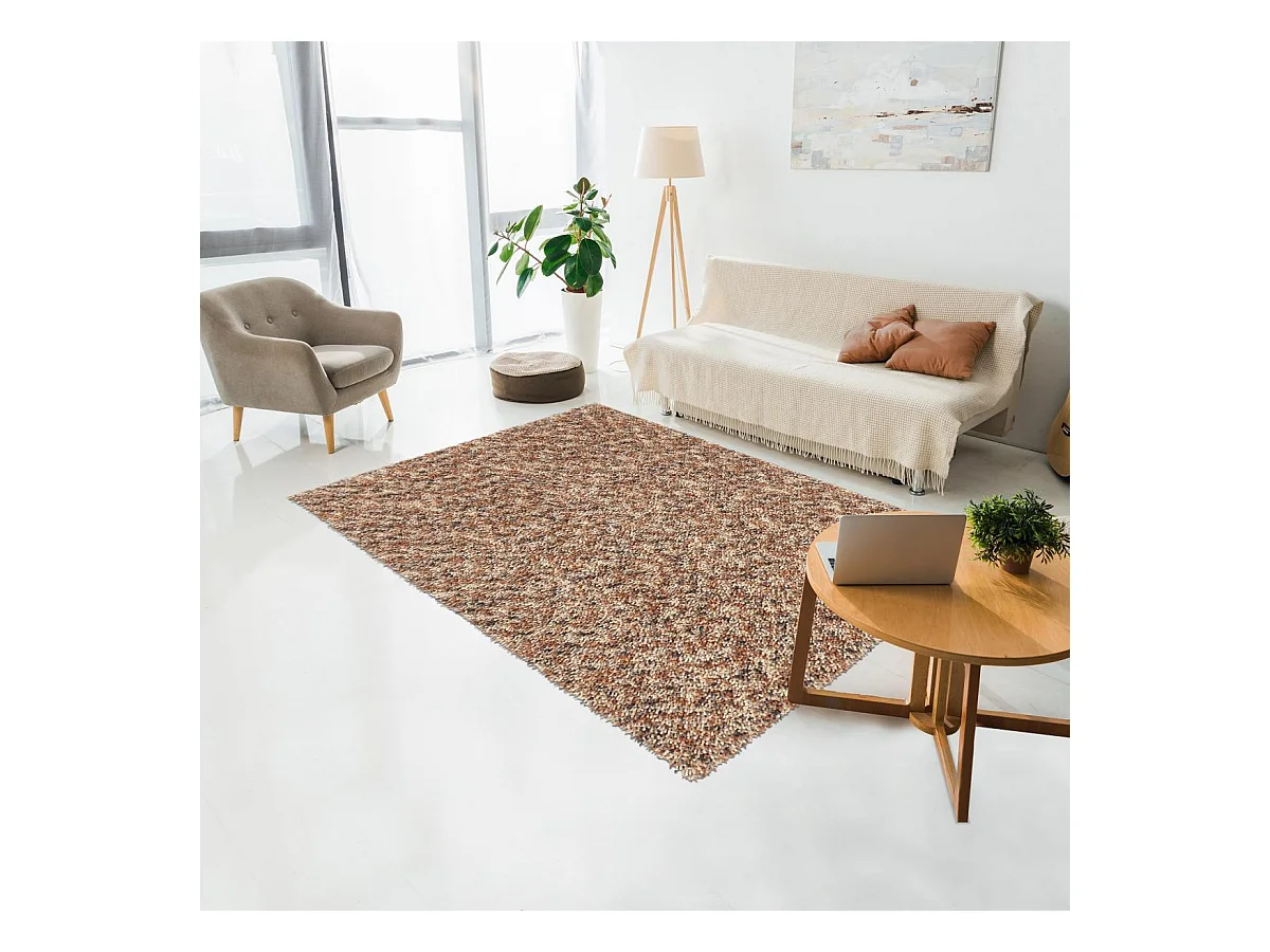 Tapis shaggy 140x200 rectangle tissé crème en laine motif faux uni DOTS