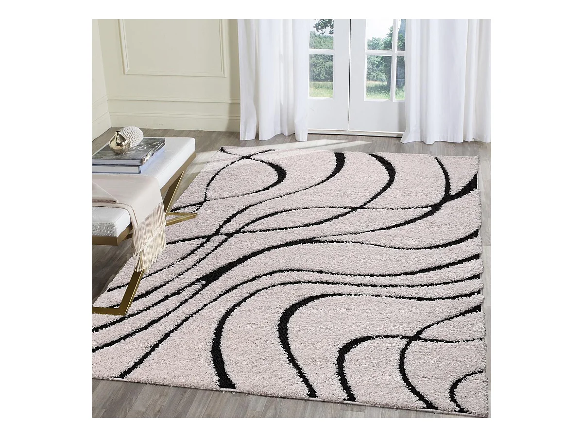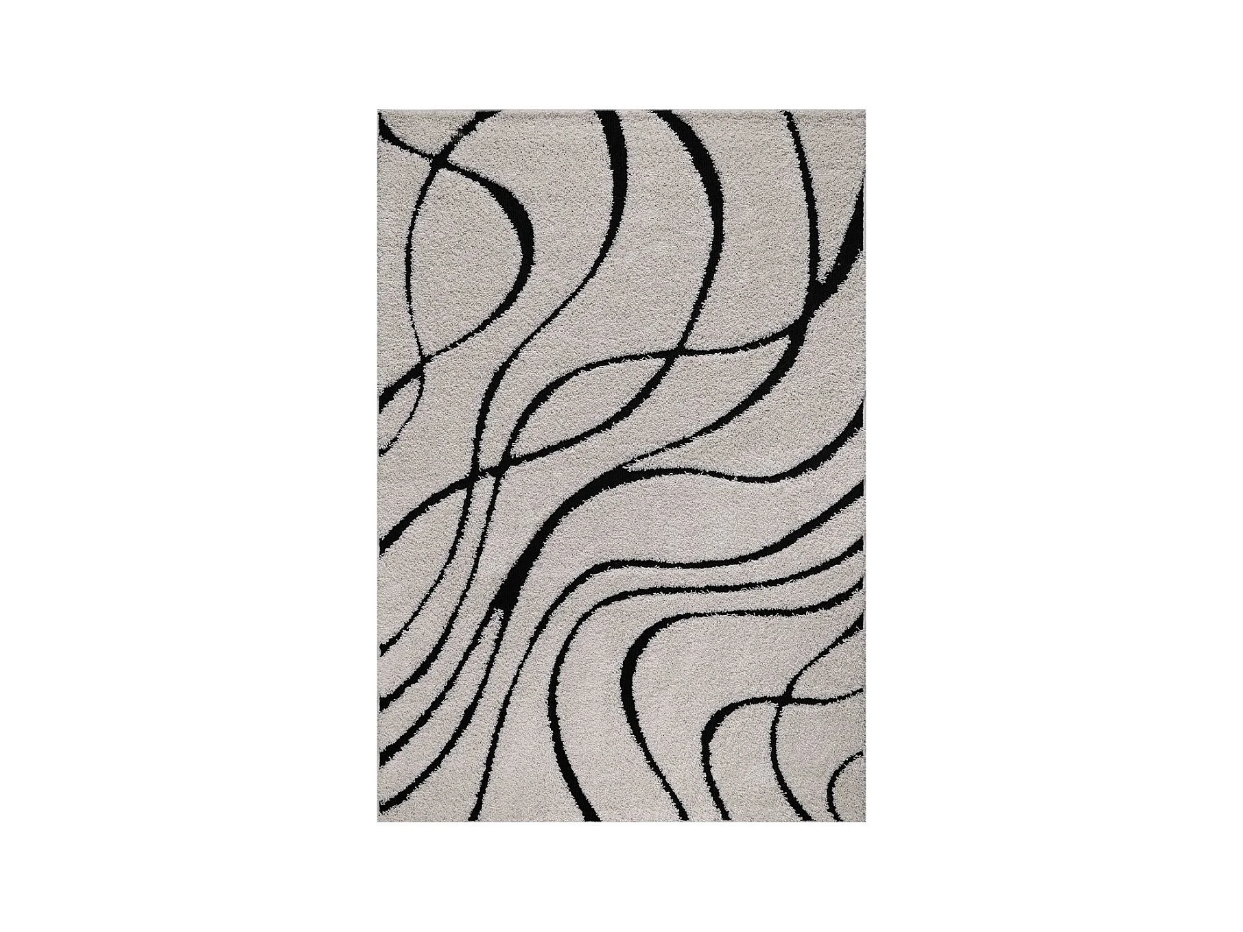 Tapis shaggy Ø120cm rond tissé crème motif géométrique POUDA
