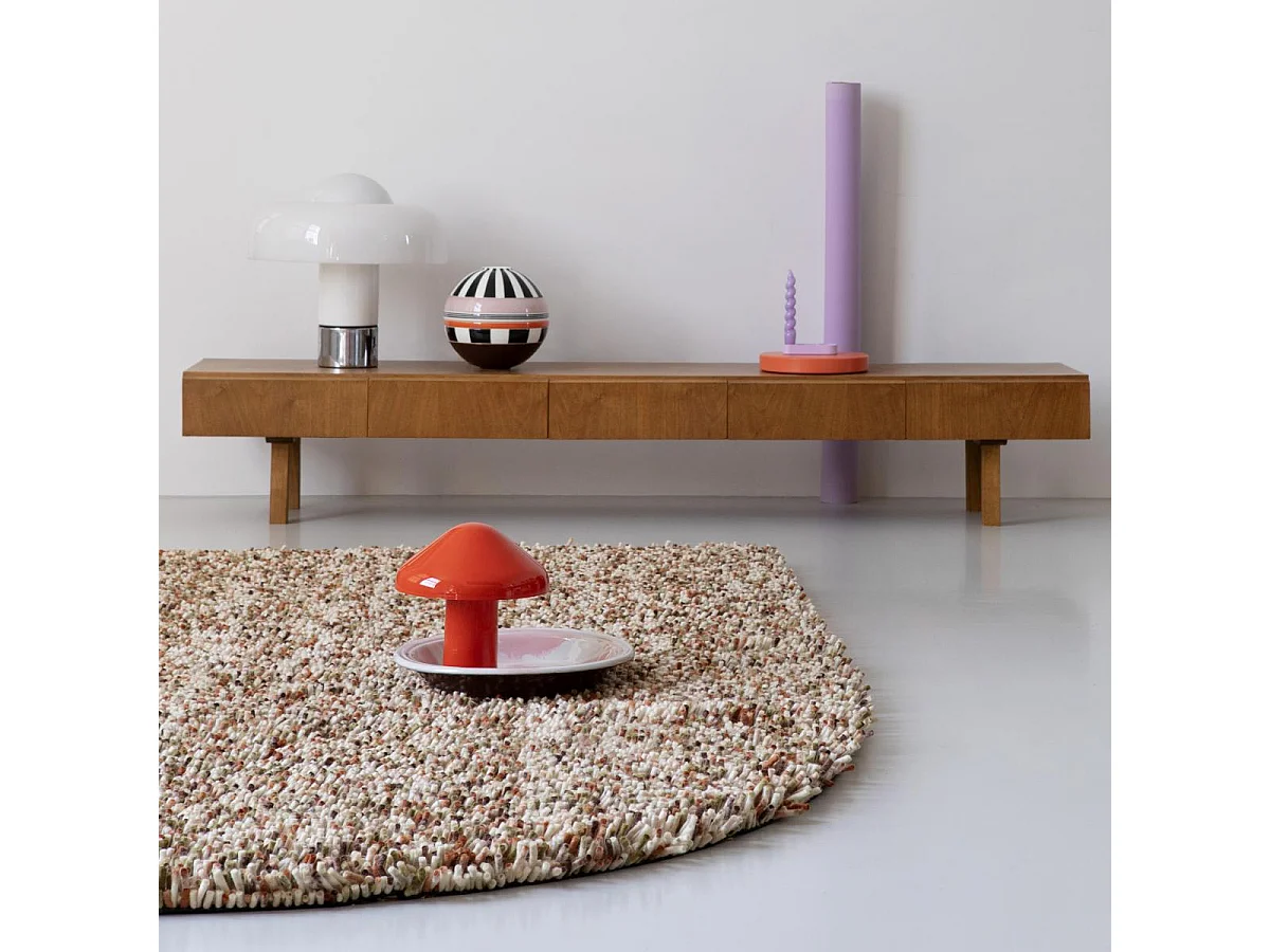 Tapis shaggy 200x300 rectangle tissé crème et marron en laine motif faux uni