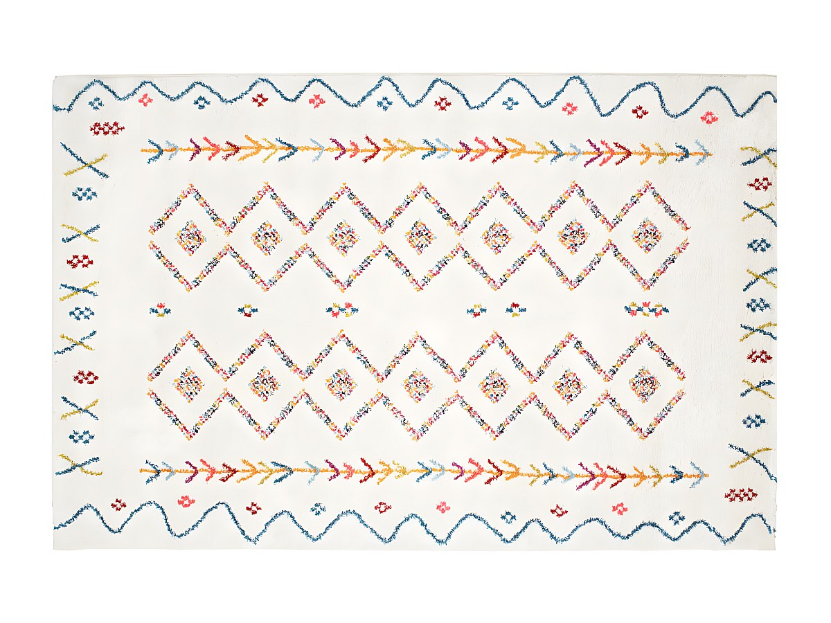 Tapis style berbère JAVA - 200 x 290 cm - Beige et motifs multicolores
