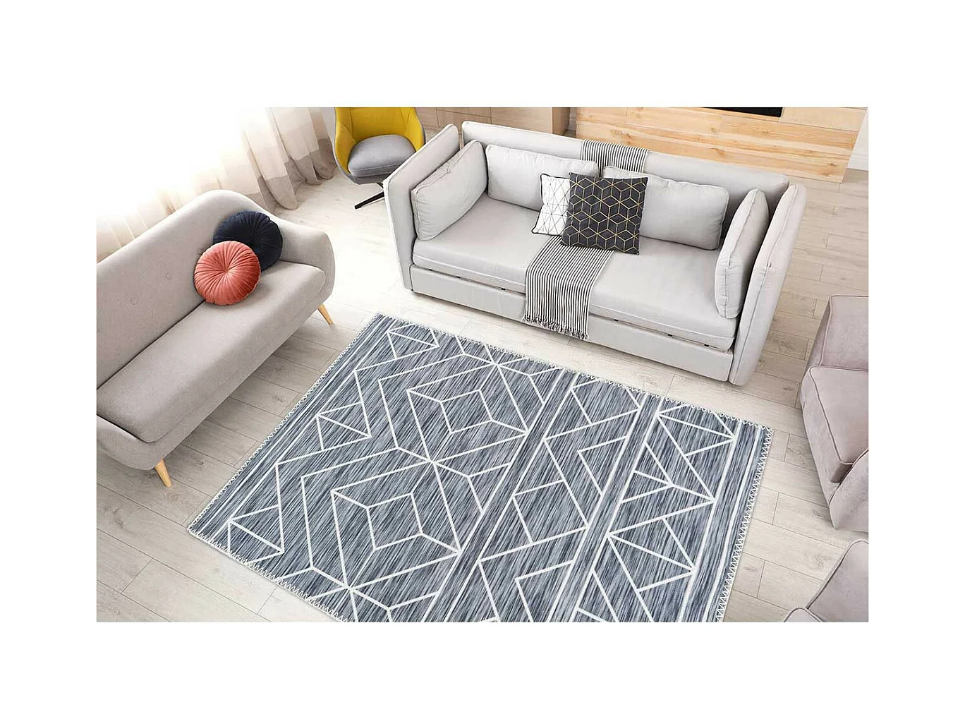 Tapis Tissé Imprimé à Poils Plats "Maya II" Anthracite 160 x 230 cm