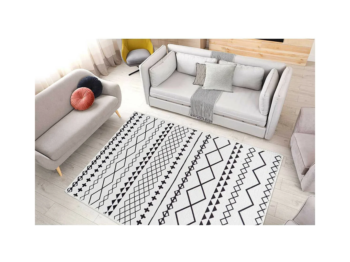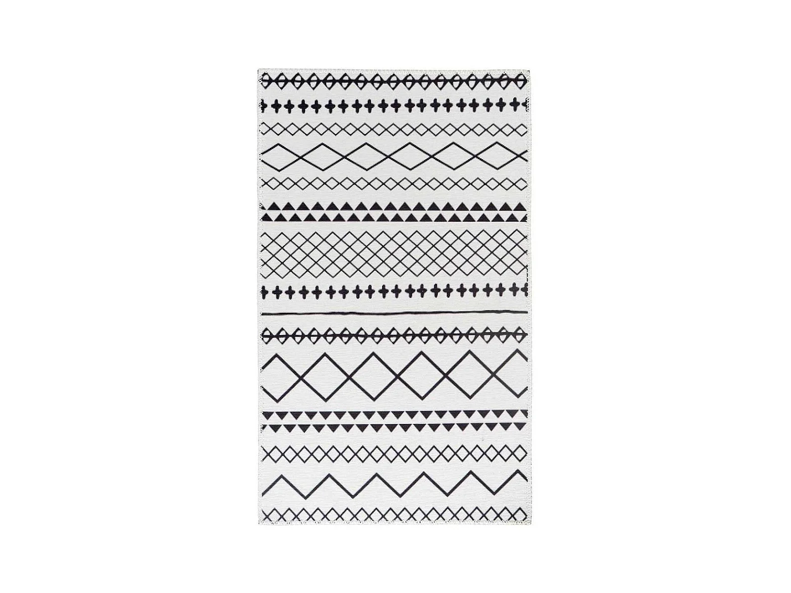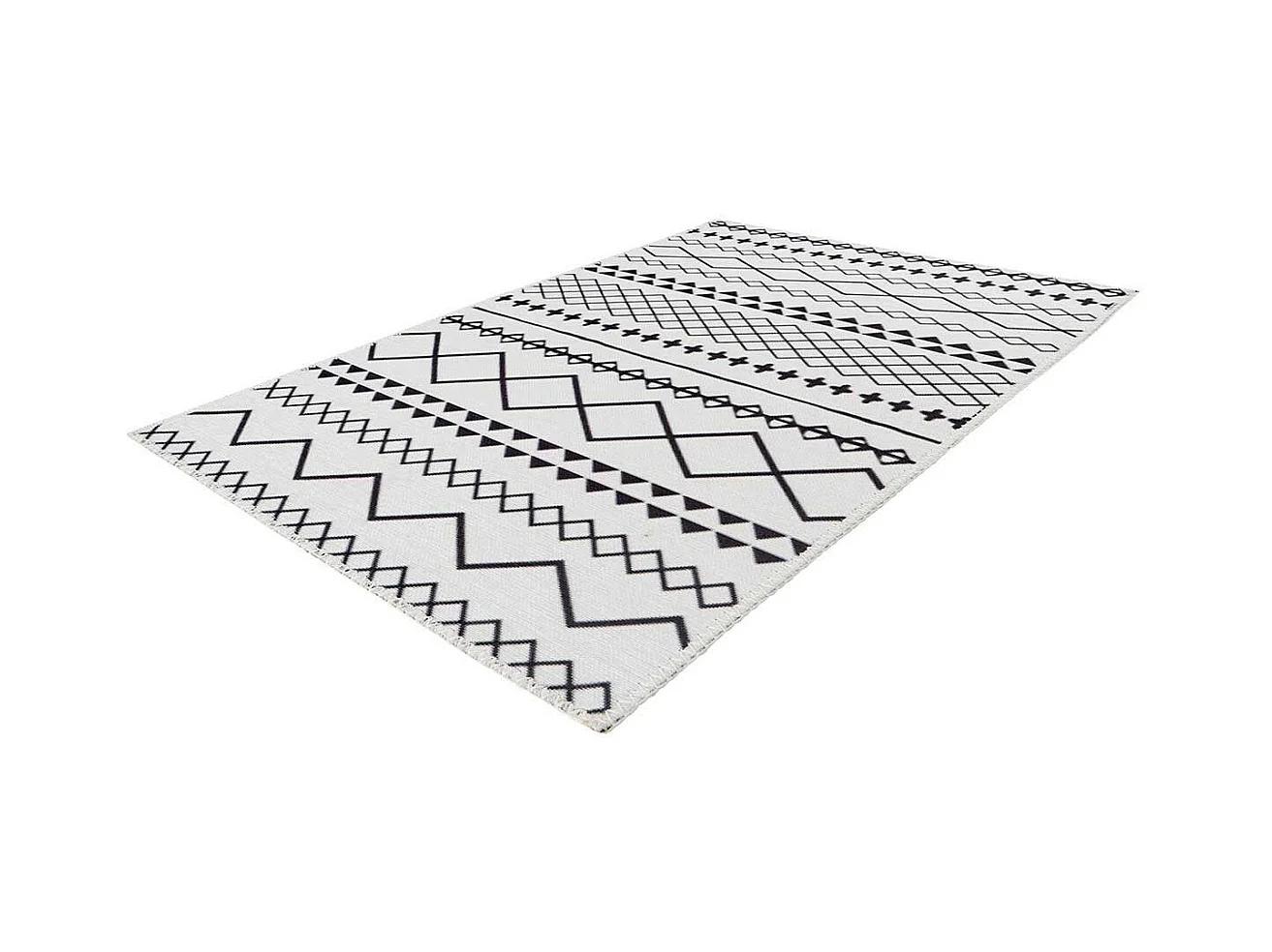 Tapis Tissé Imprimé à Poils Plats "Maya IV" Blanc & Noir 120 x 180 cm