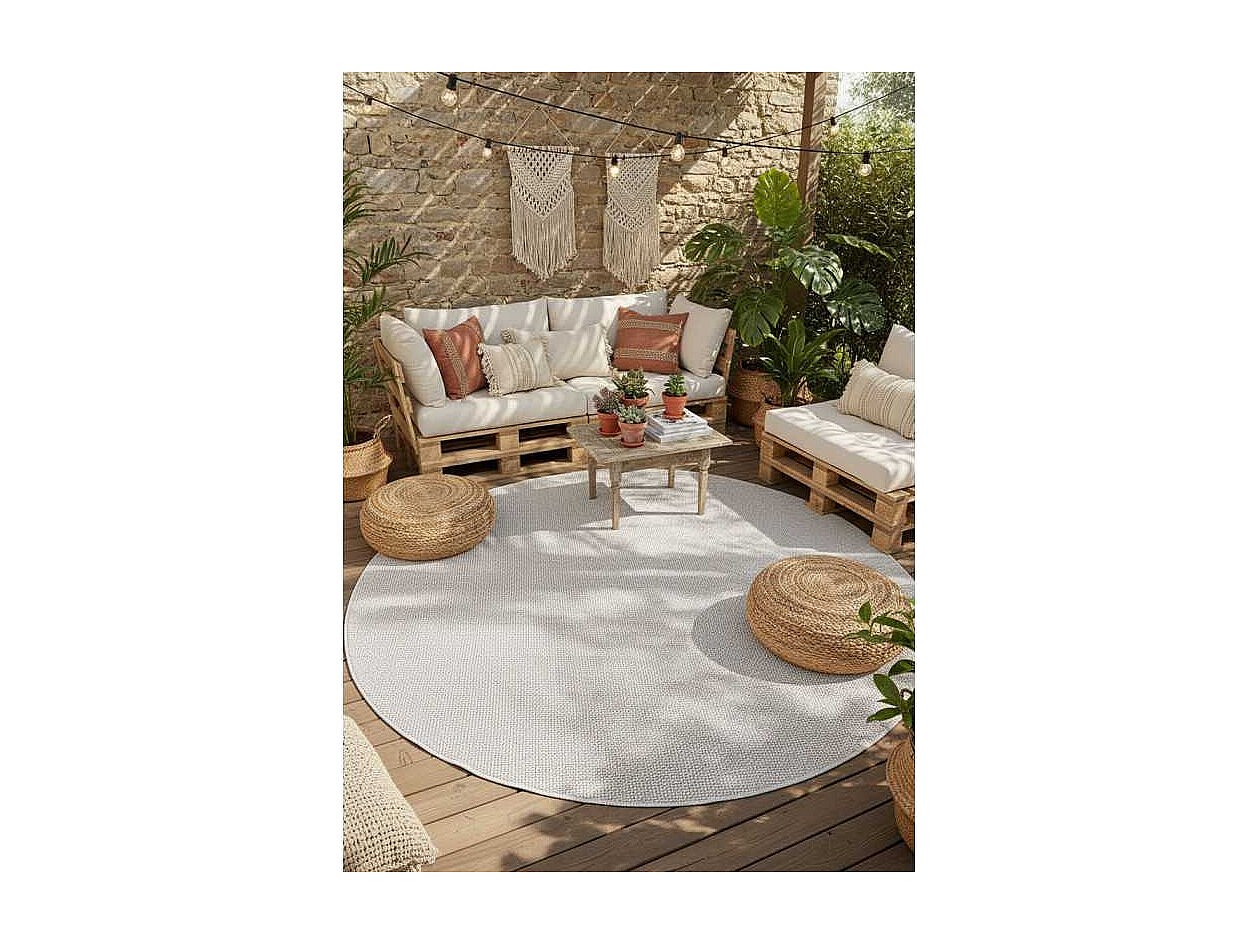 Tapis tissé uni extérieur intérieur PANAMA 57 Crème 120*120