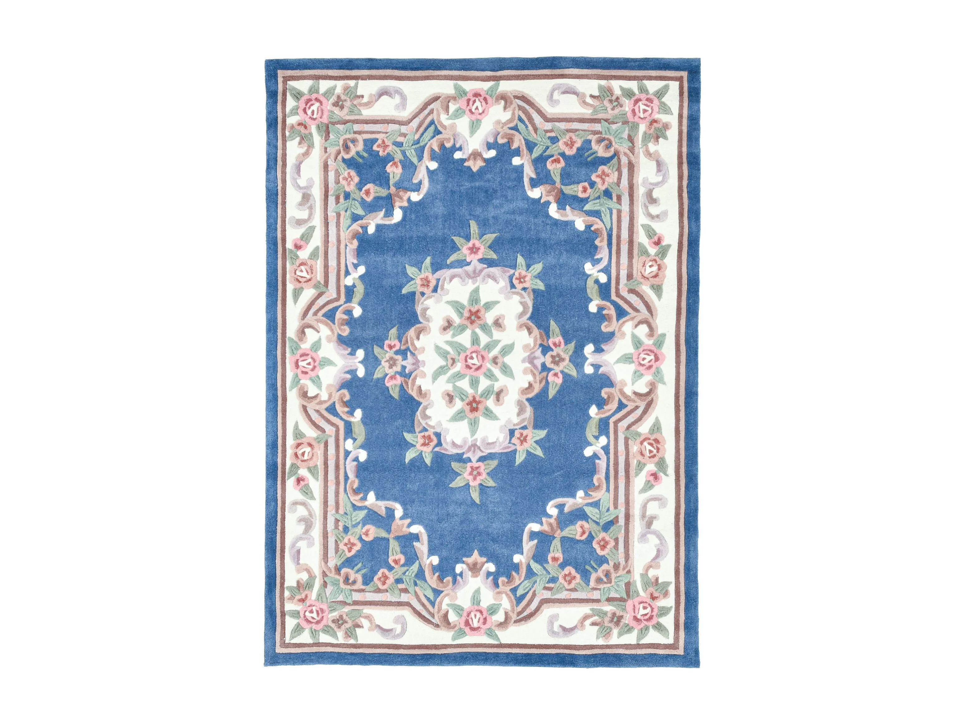 Tapis tufté à la main avec bordure, style Aubusson 190x290 cm bleu Ming