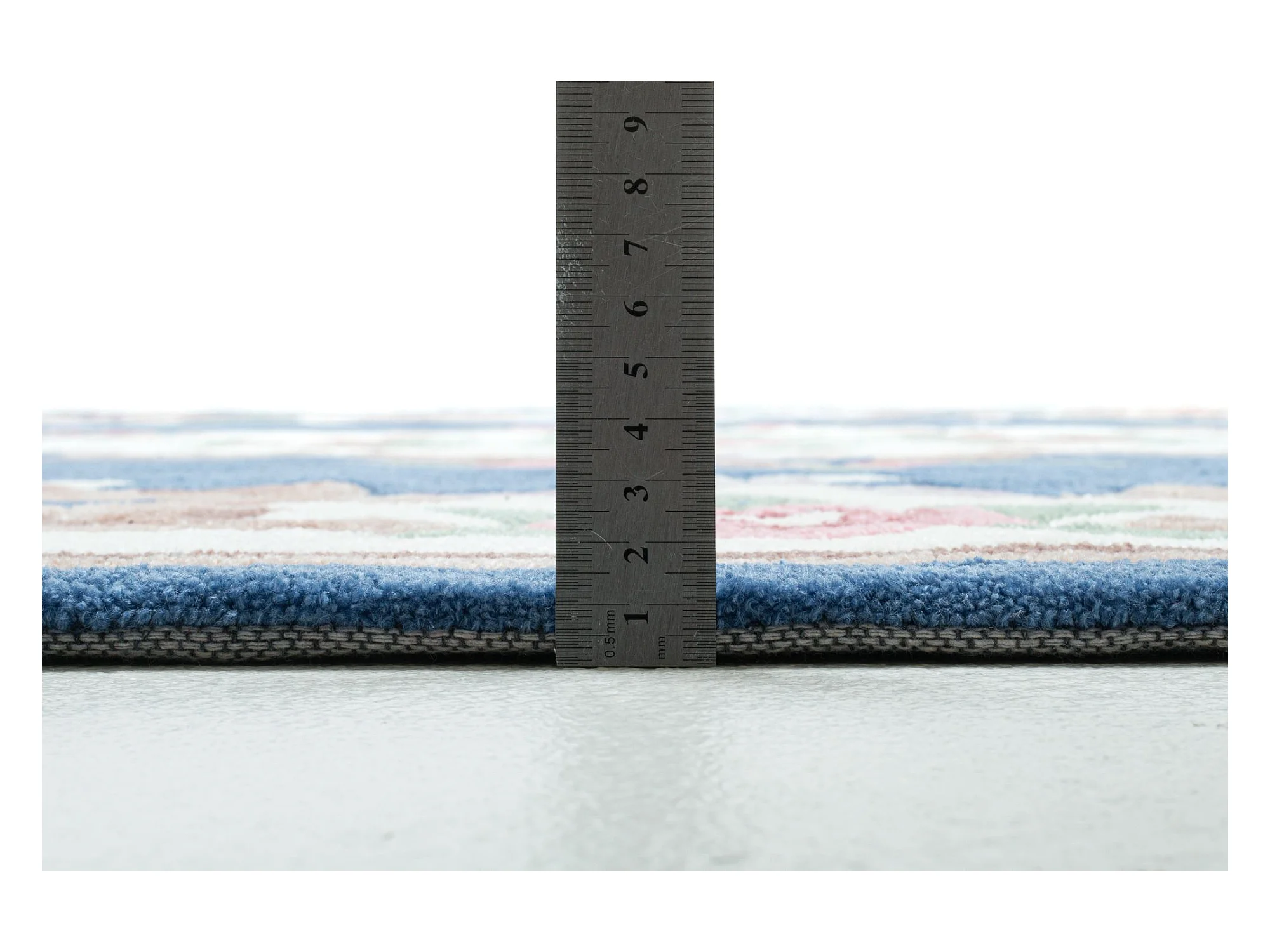 Tapis tufté à la main avec bordure, style Aubusson 160x230 cm bleu Ming