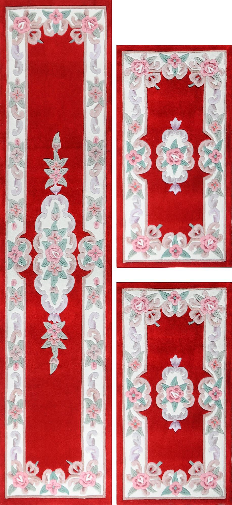 Tapis tufté à la main avec bordure, style Aubusson 70x600 cm rouge Ming