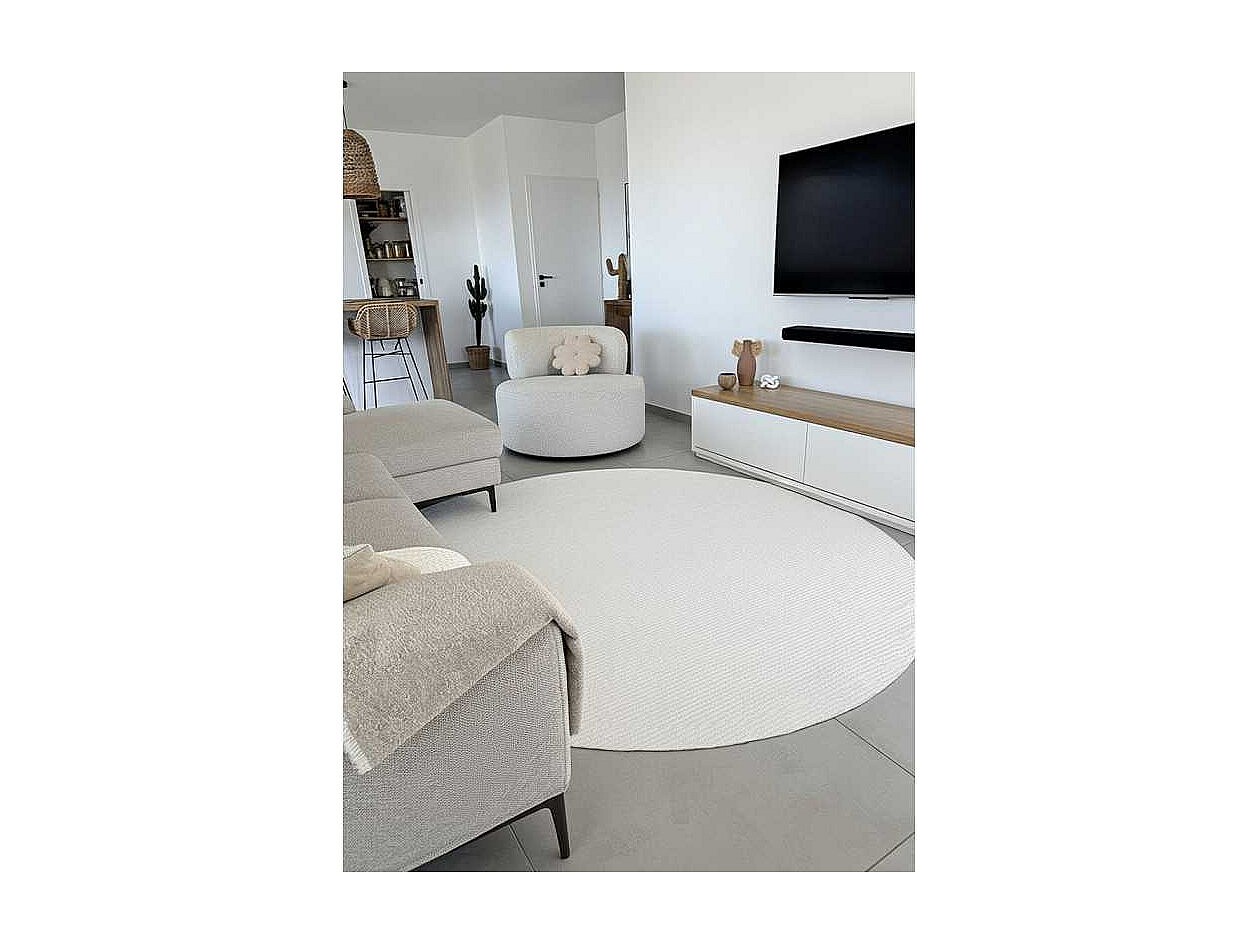 Tapis SOFTY cercle plaine couleur unie crème cercle 120 cm