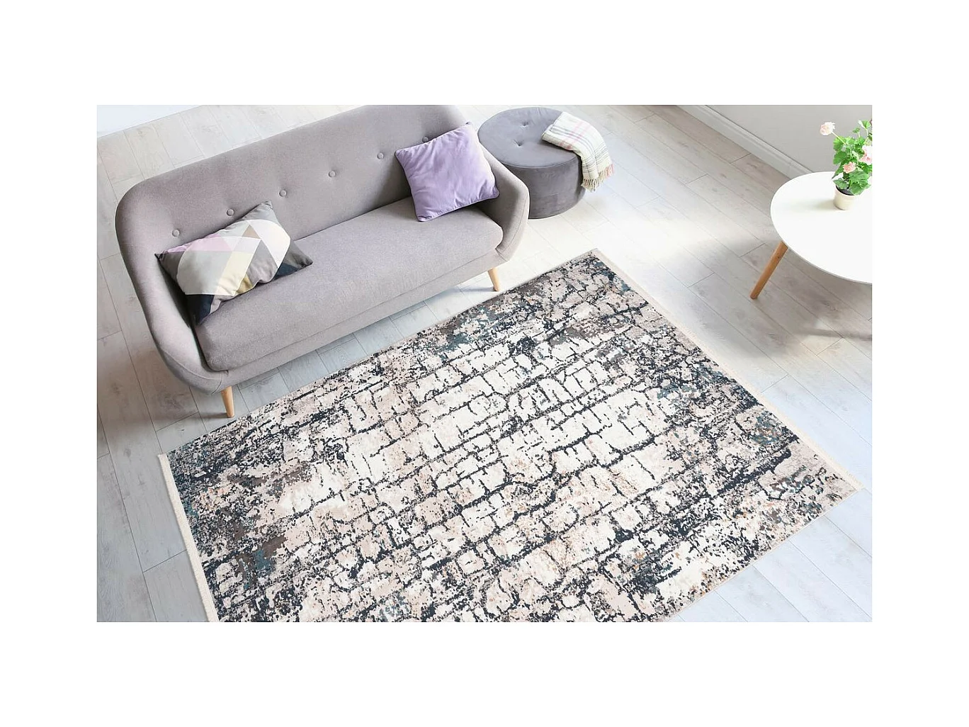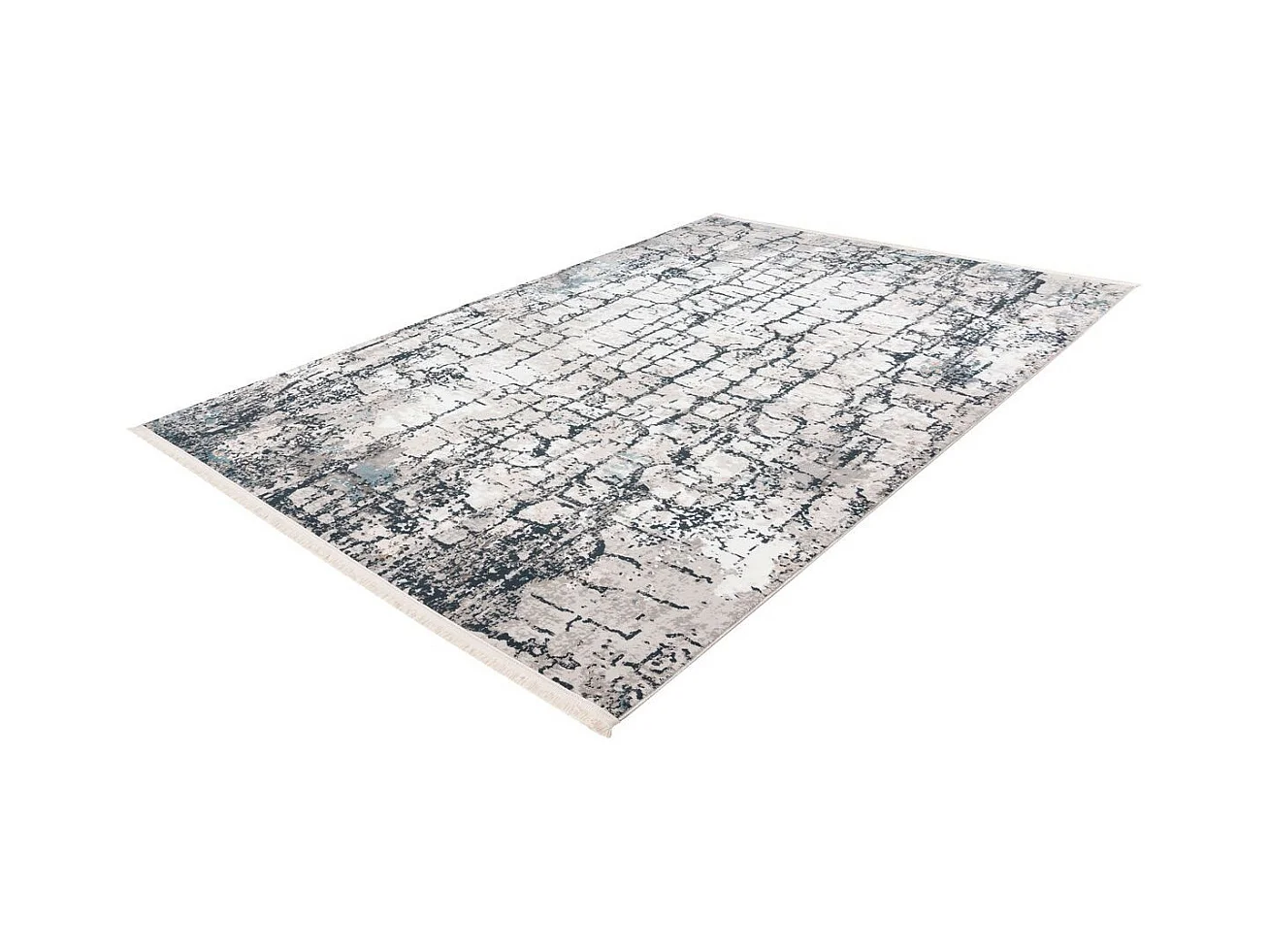 Tapis Vintage à Franges "Akropolis III" Gris & Bleu 120 x 180 cm