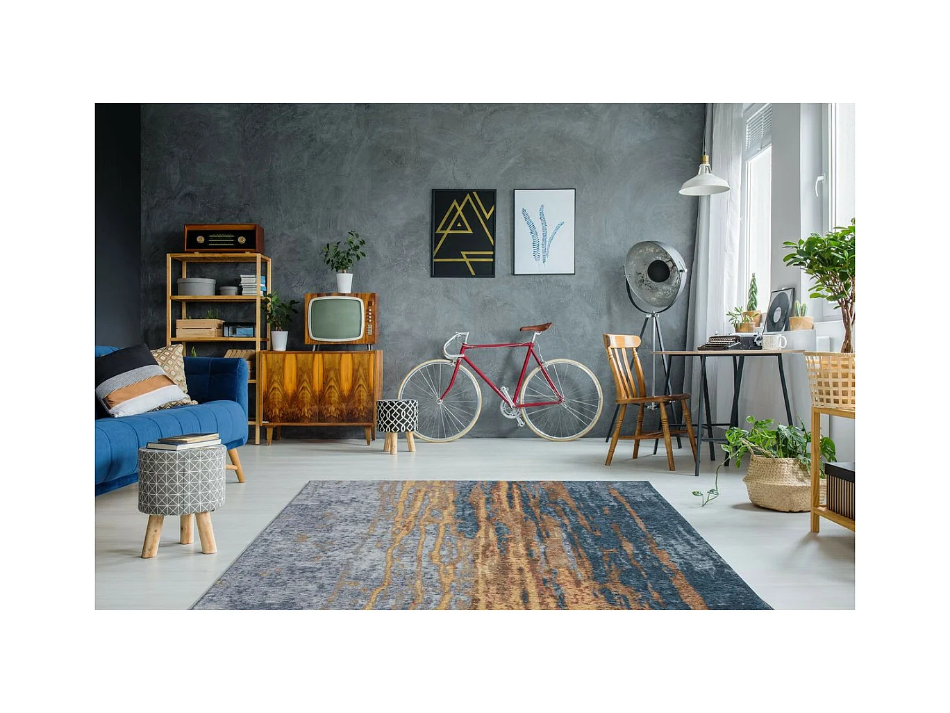 Tapis Vintage à Poils Courts "Blaze" Bleu & Beige 155 x 230 cm