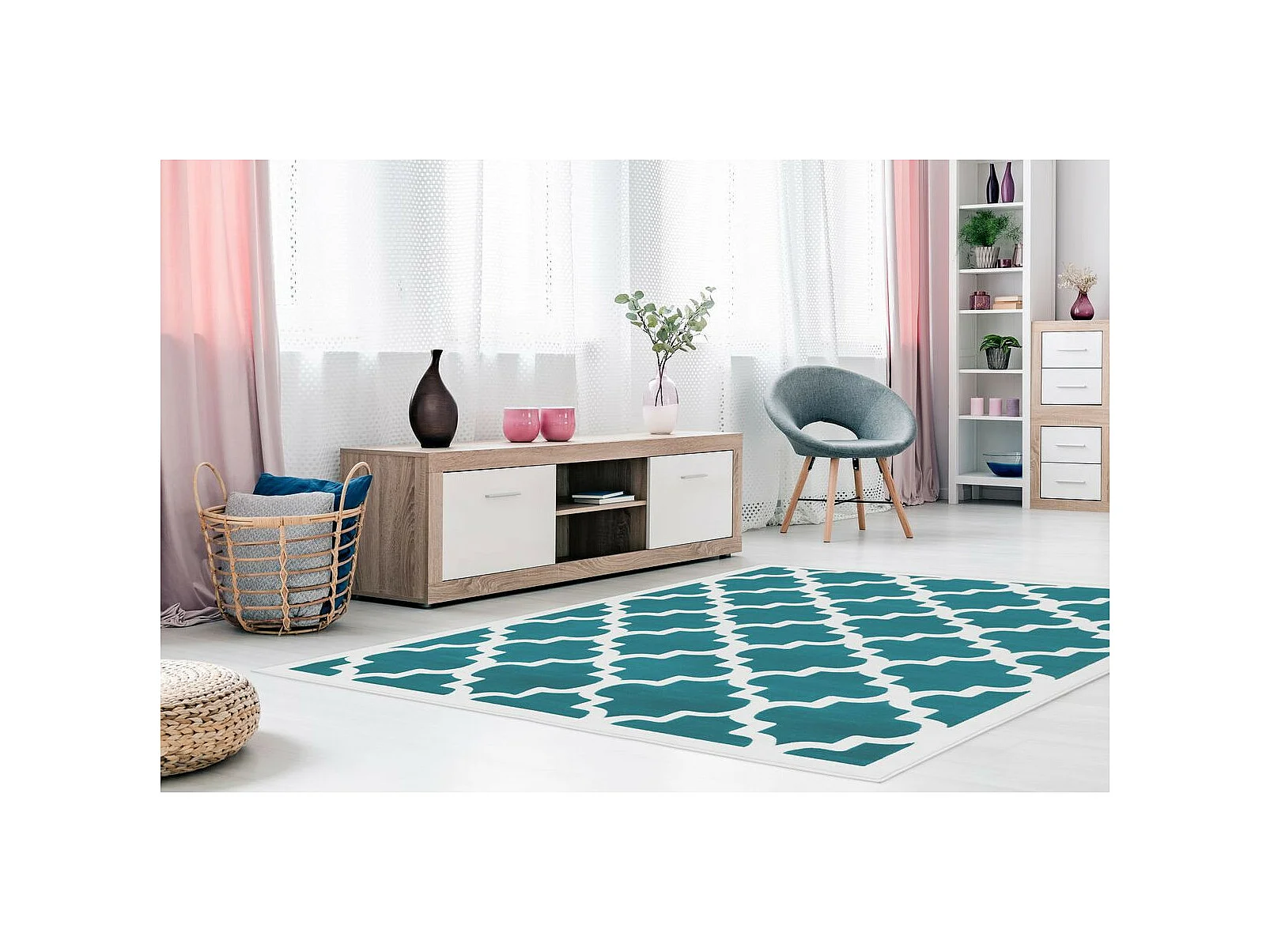 Tapis Géométrique à Poils Courts "Manolya" Turquoise 200 x 290 cm