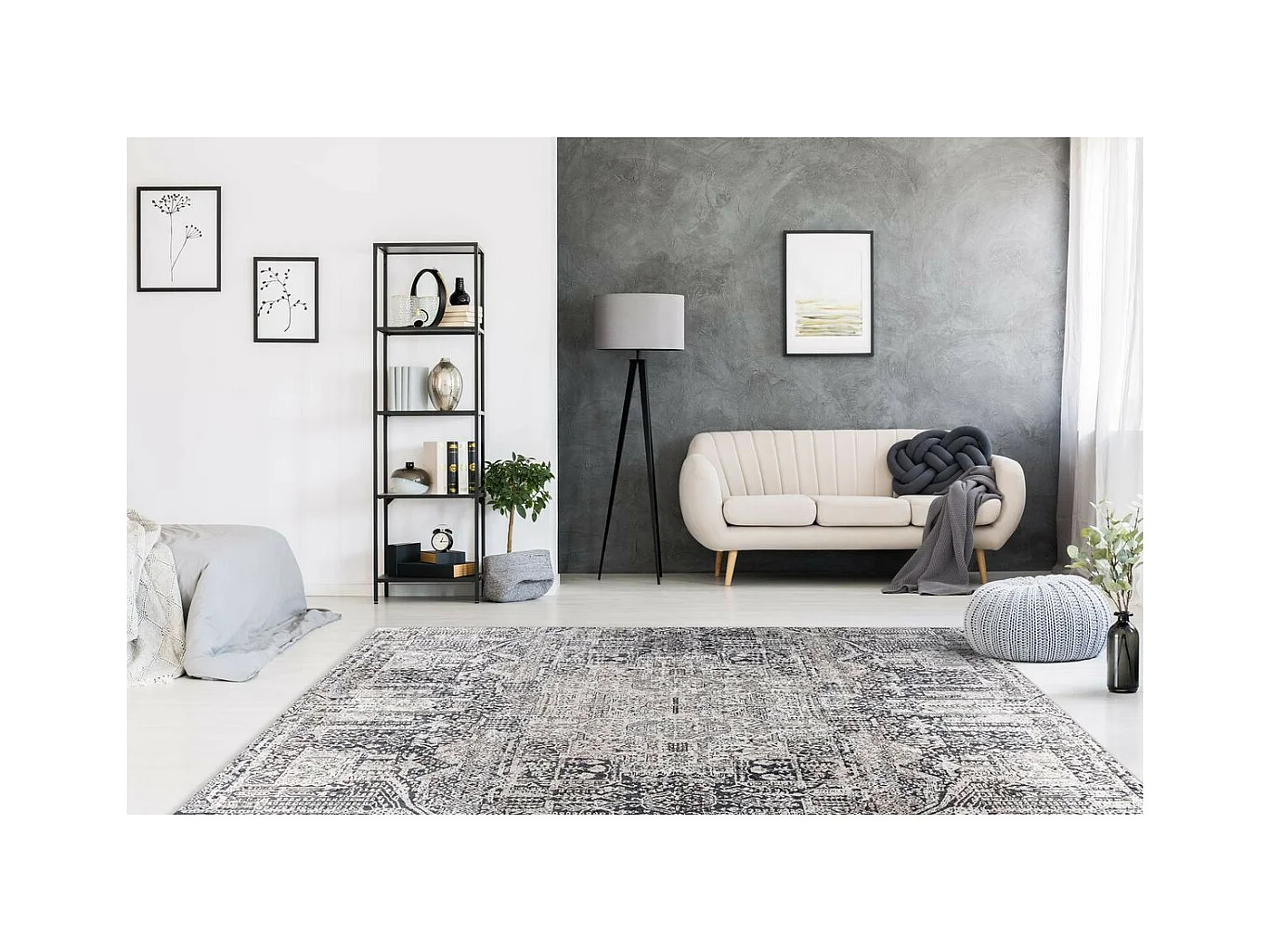 Tapis Imprimé Vintage "River" Gris & Noir 80 x 150 cm