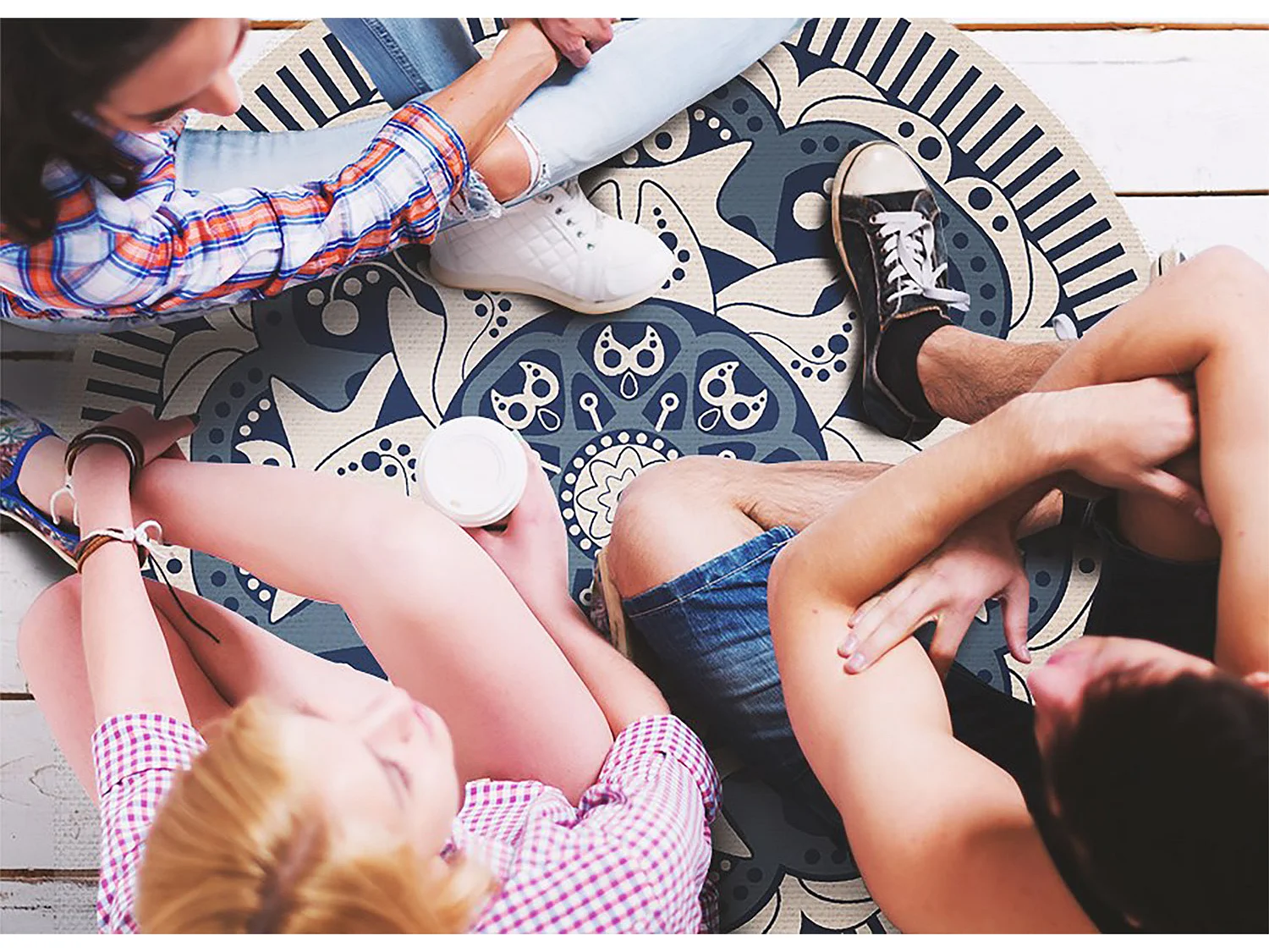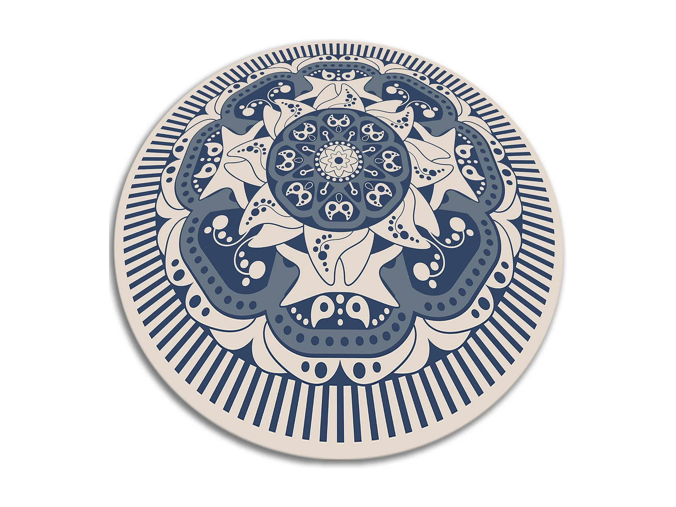 Tapis Vinyle 120cm Pour la Cuisine Rond Salon Imperméable PVC Linoléum - Mandalas floraux