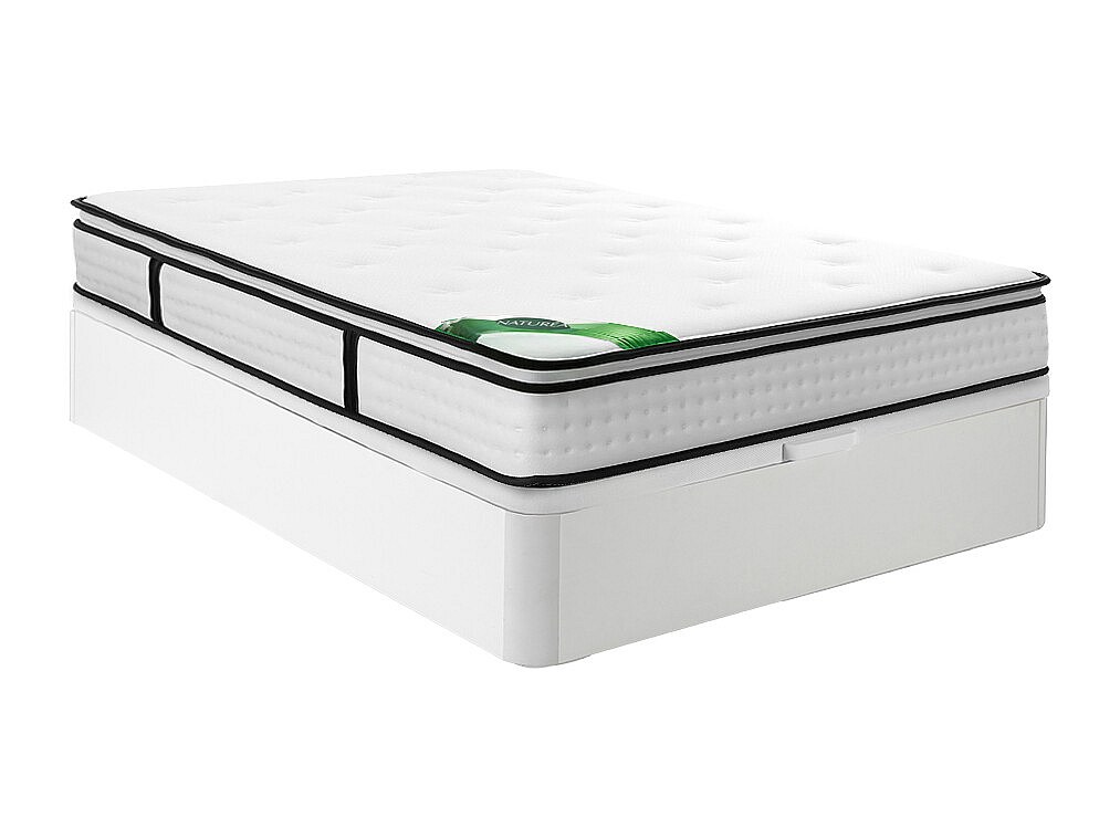 Ensemble 160 x 200 cm sommier coffre blanc + matelas ressorts ensachés 7 zones surmatelas intégré et coutil bambou ép.23cm - TAREVO de NATUREA