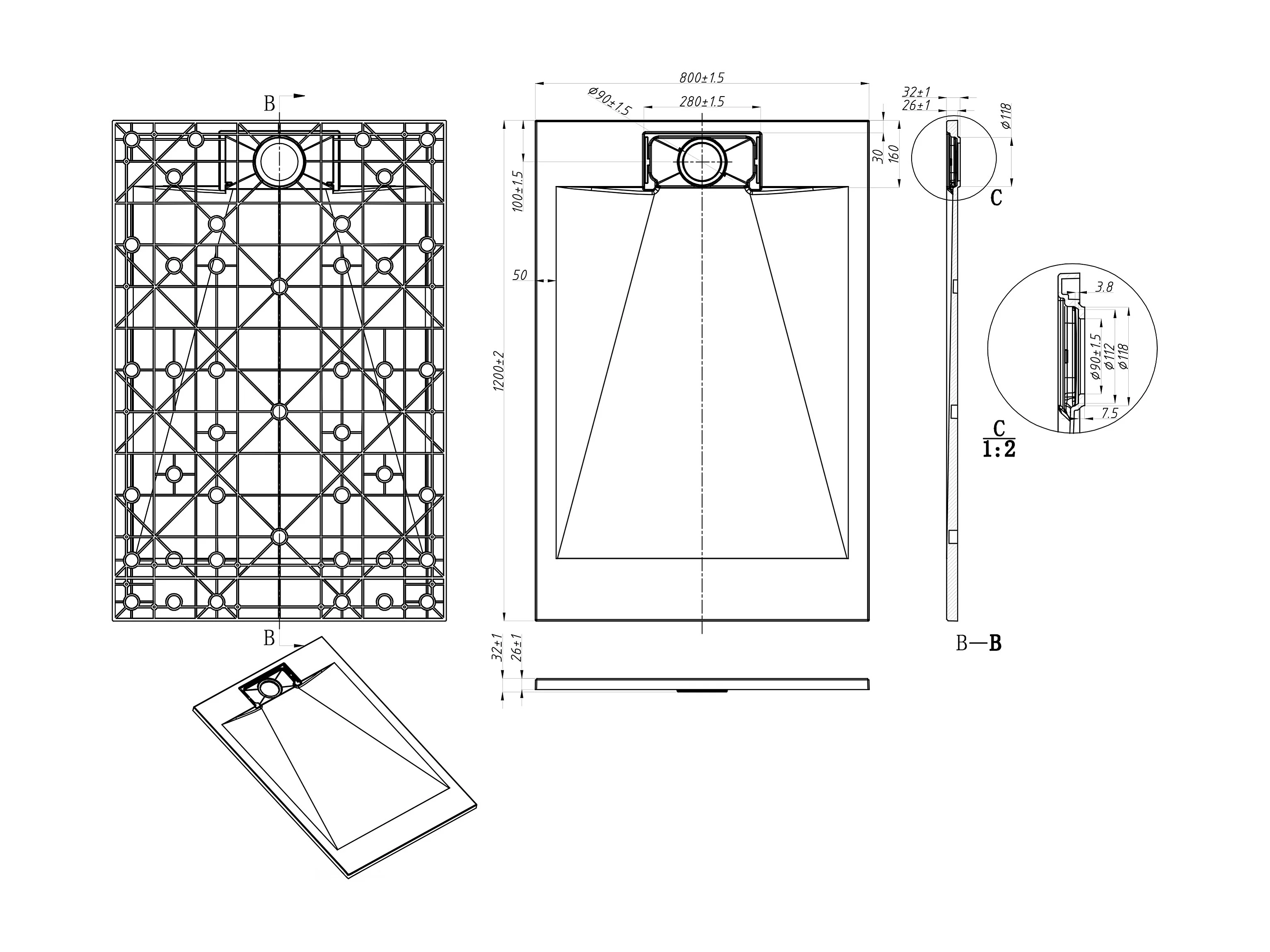 Receveur extra-plat à poser ou à encastrer recoupable en résine SMC - Blanc mat - 120 x 80 cm - TARPOSA