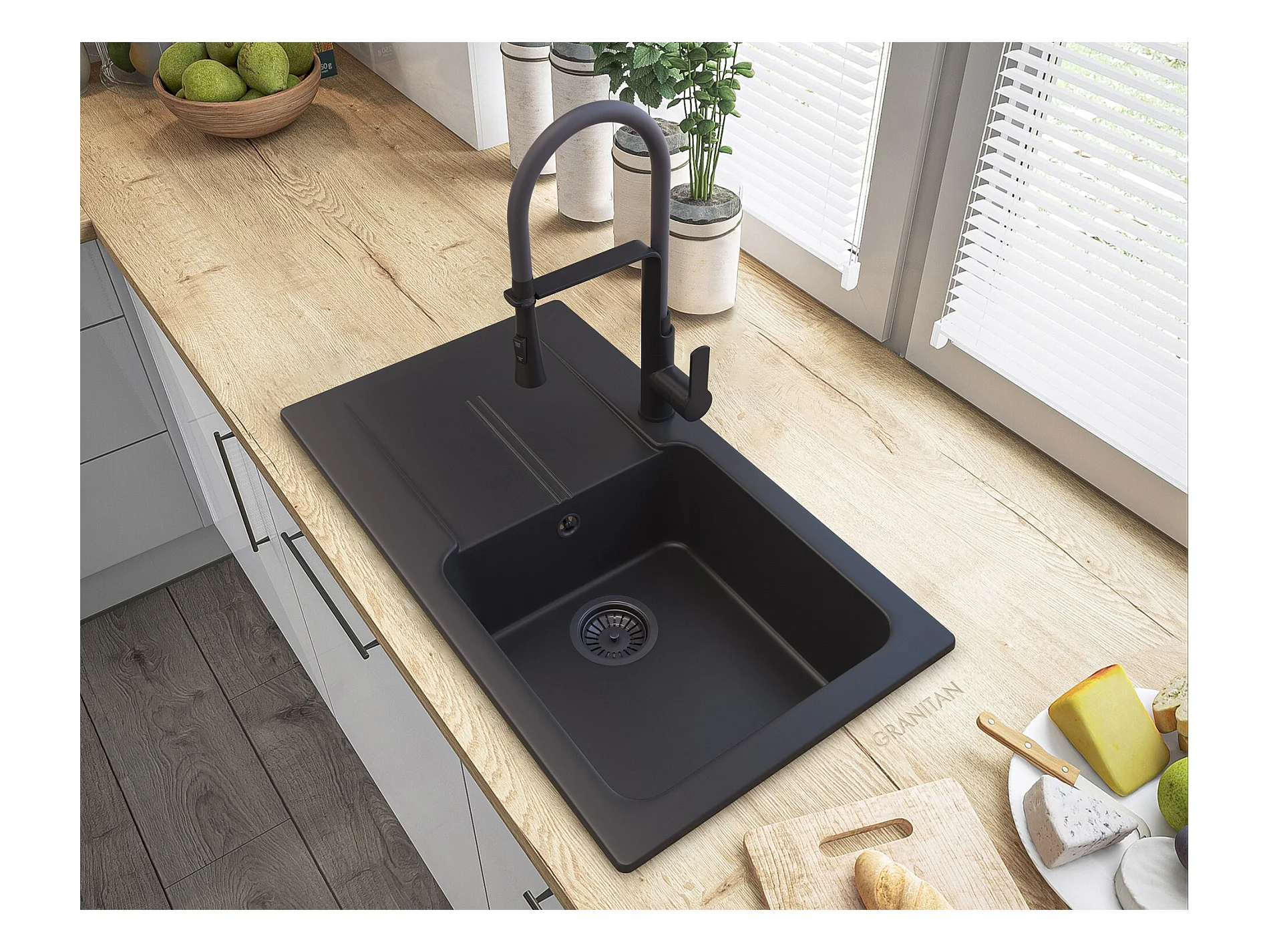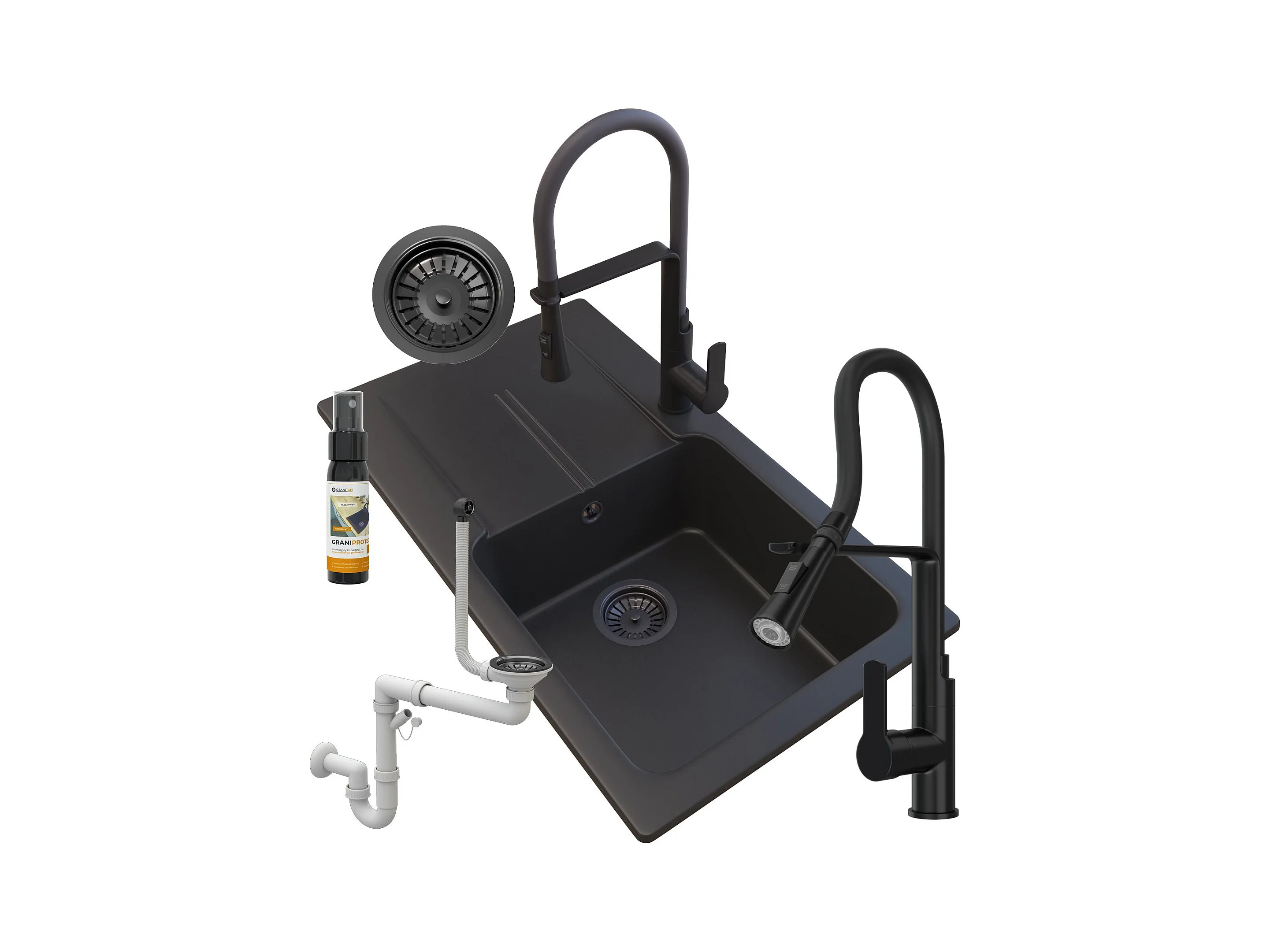 TASOS GRANIT ÉVIER NOIR + ROBINETTERIE VEGAS+SIPHON