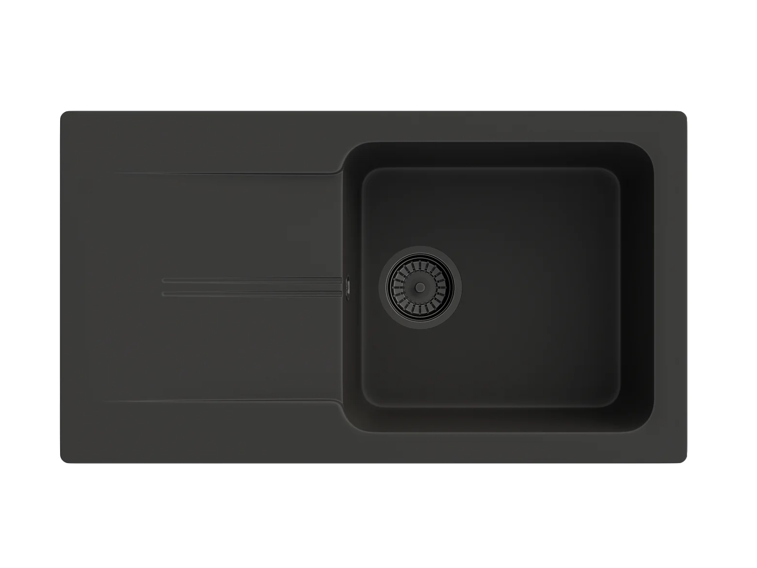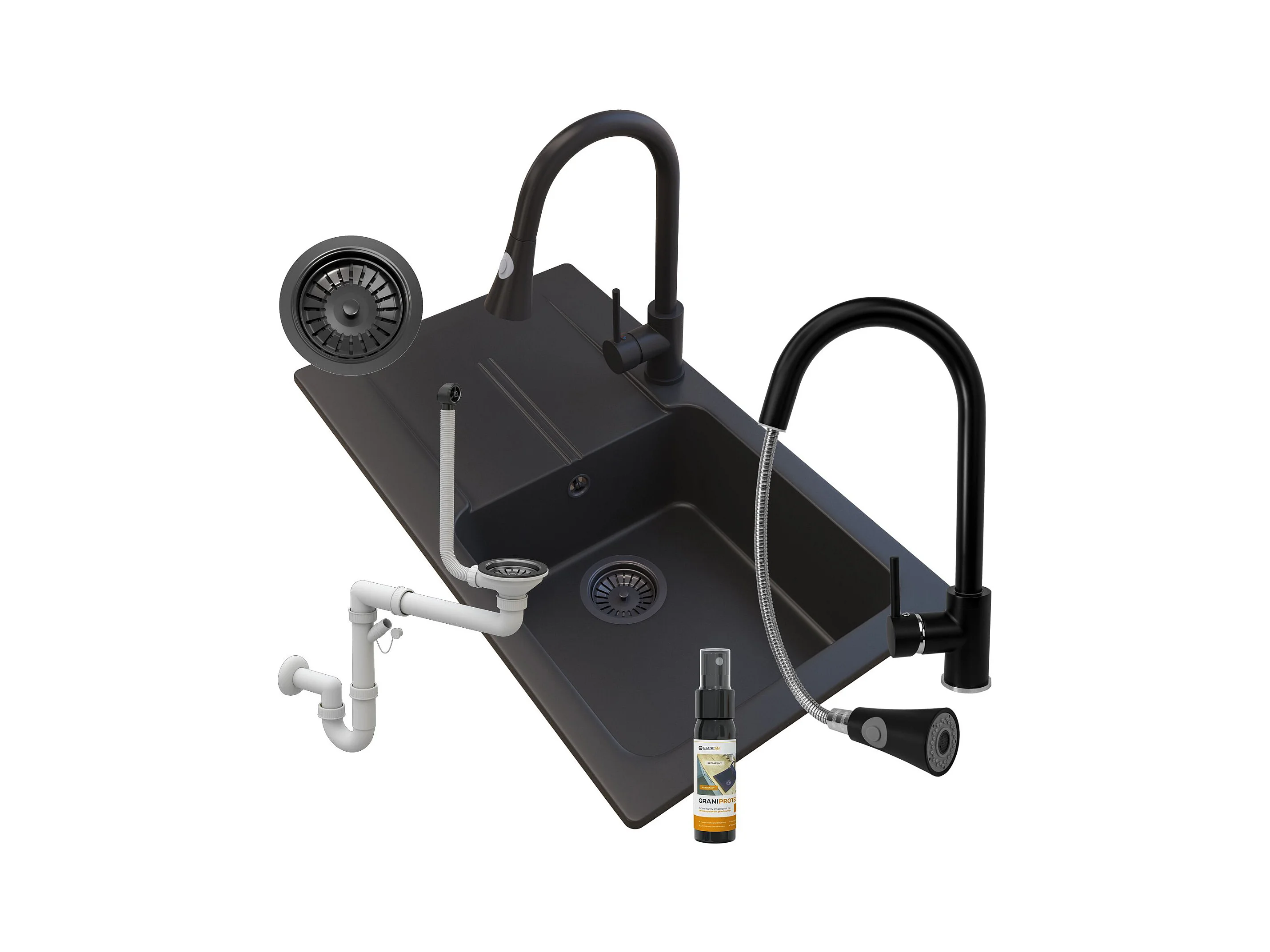 TASOS GRANITE NOIR ÉVIER + MÉLANGEUR SERPENT + SIPHON