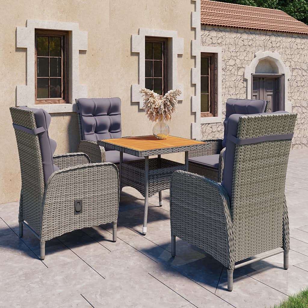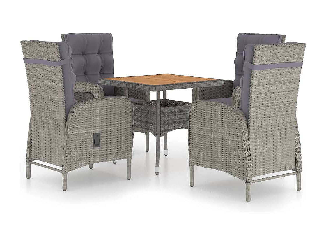 Tatum Ensemble à manger de jardin 5 pcs Résine tressée et acacia Gris