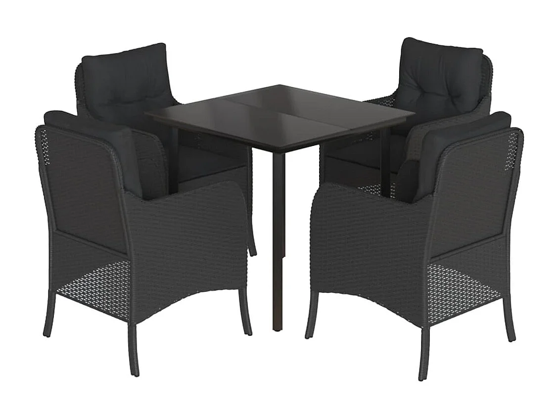 Tavian Ensemble à manger de jardin coussins 5pcs Noir Résine tressée