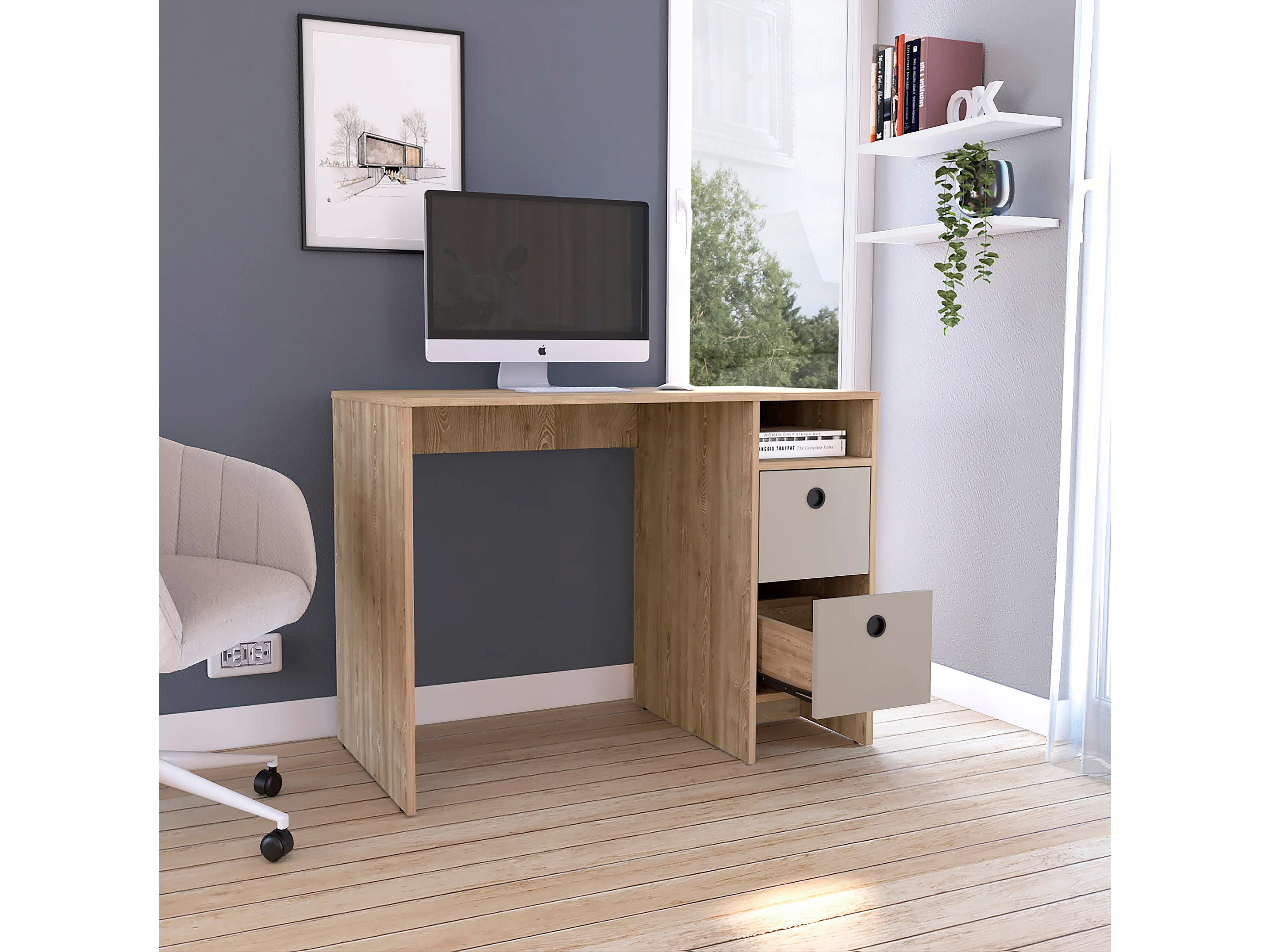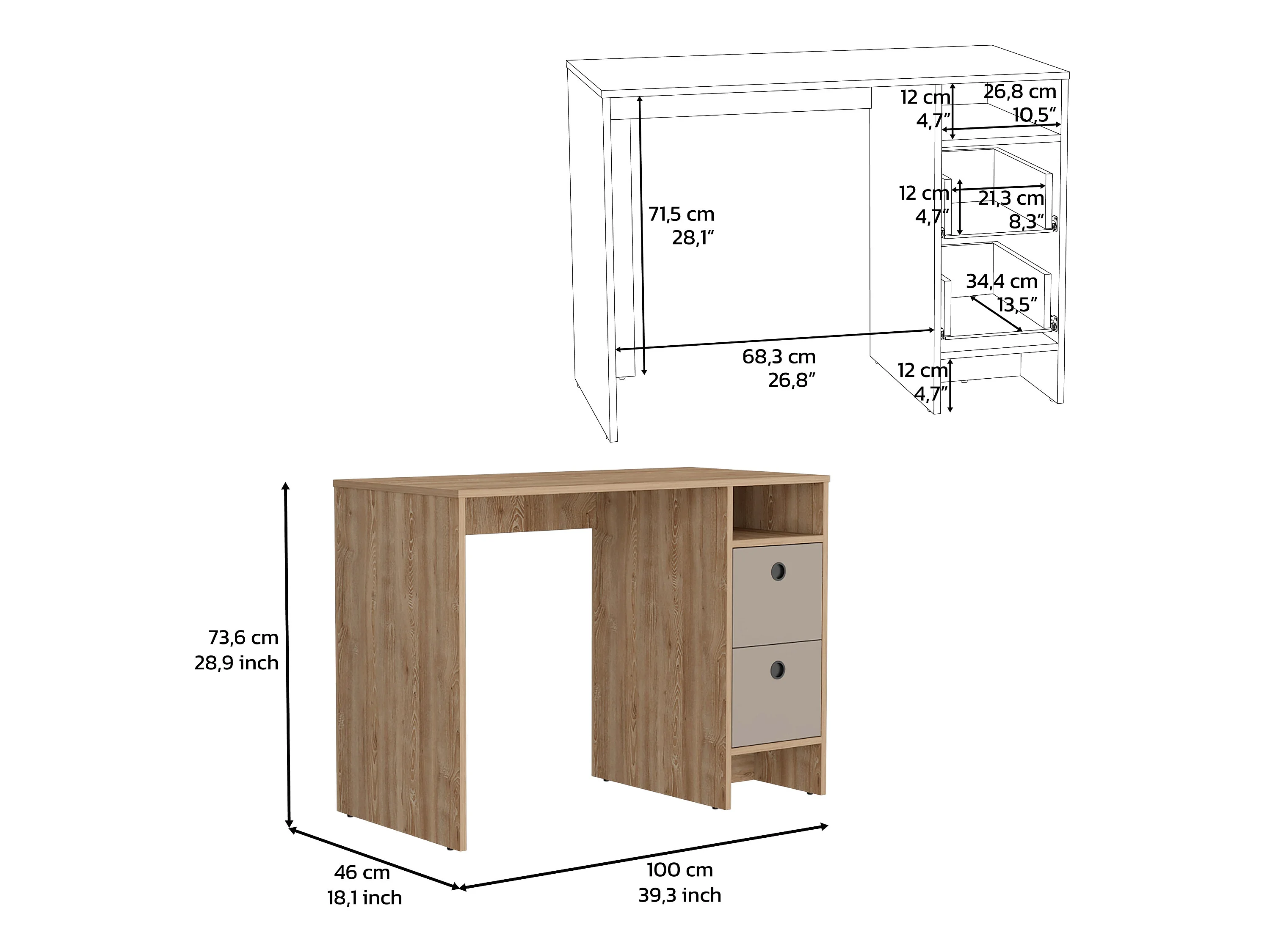 Support d'imprimante organiseur bureau caisson avec 2 tiroirs dont 1 verrouillable avec clé 2 niches grand plateau dim 80L x 40l x 66,5H cm blanc