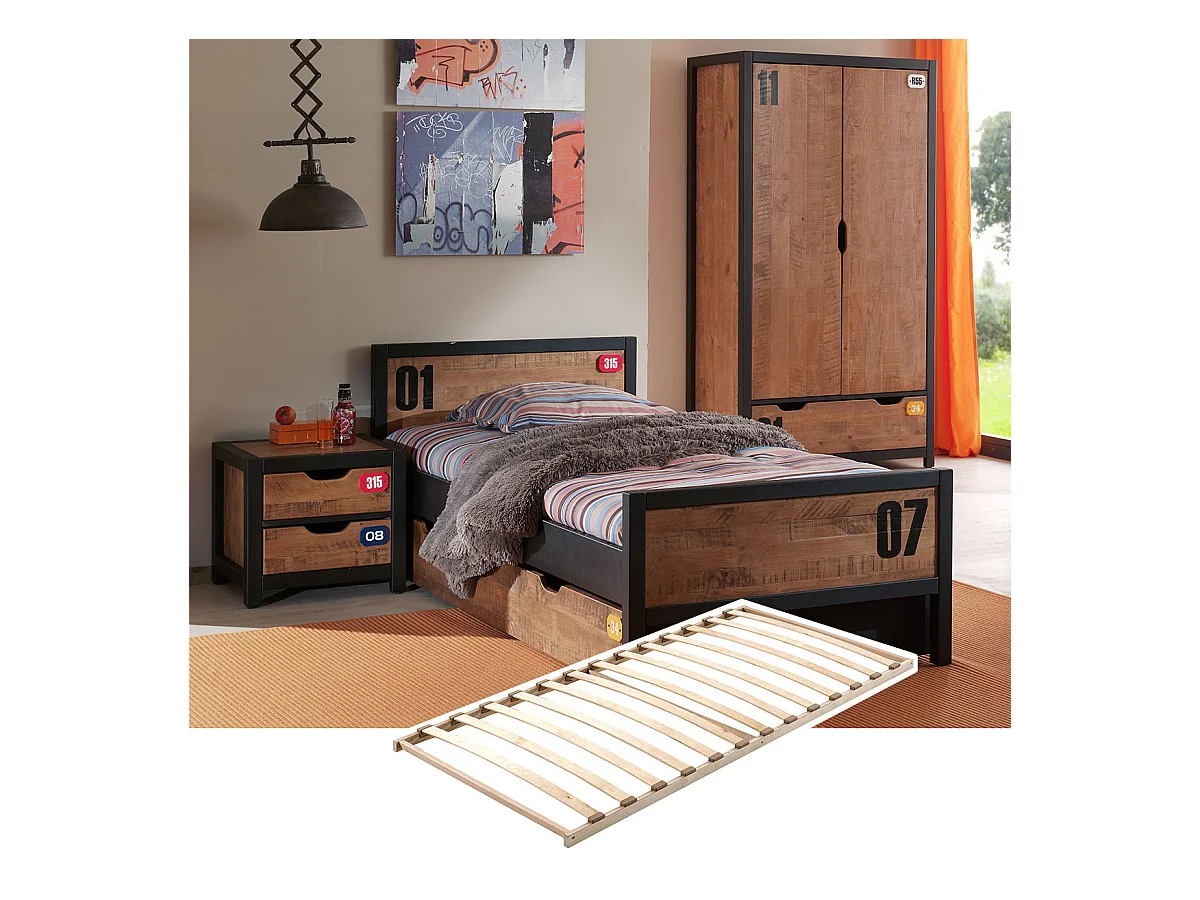 TCHAD - Chambre 90x200cm avec Sommier + Armoire 2 Portes