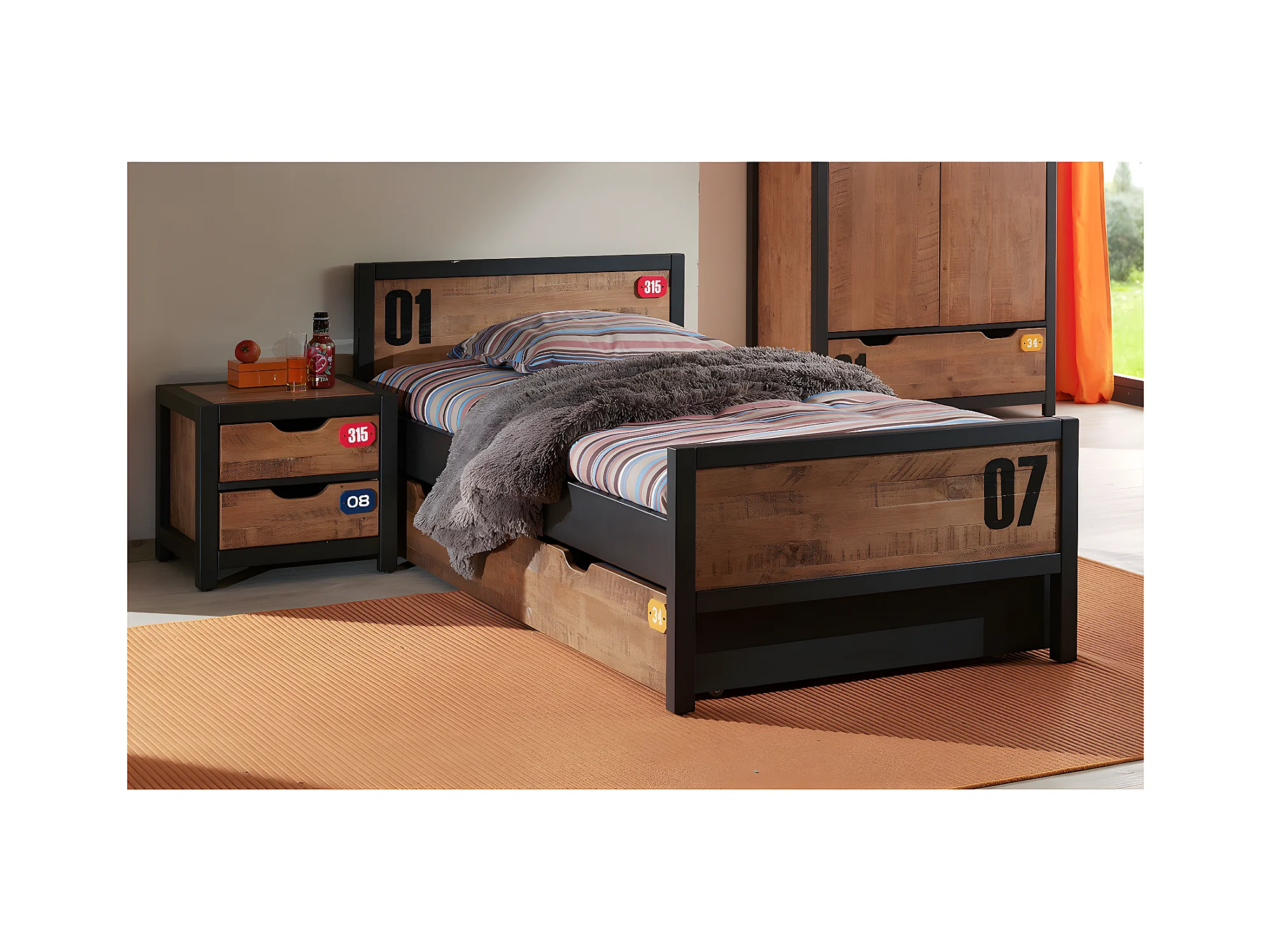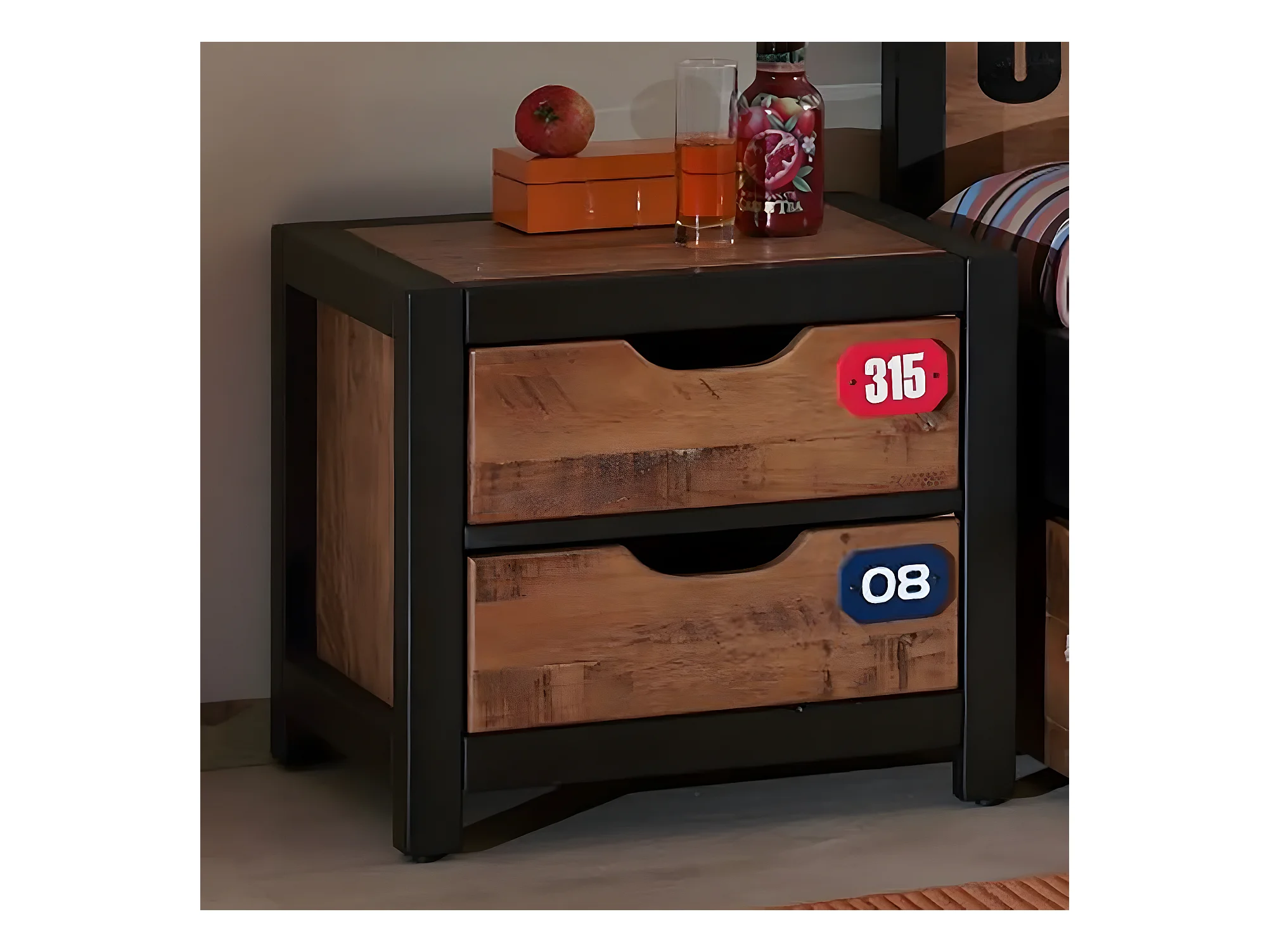 TCHAD - Chevet 2 Tiroirs en Pin Massif avec Motifs