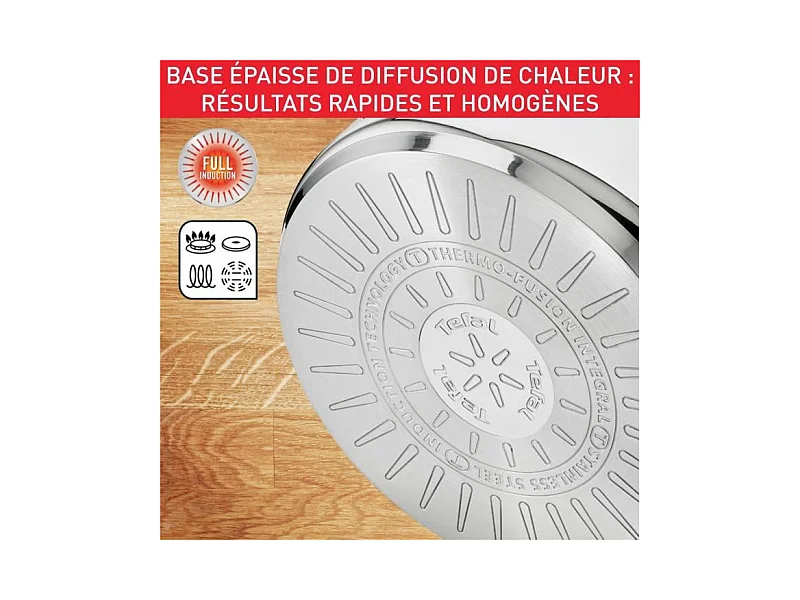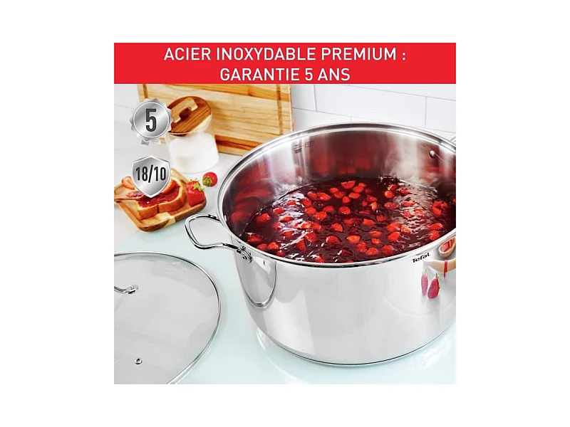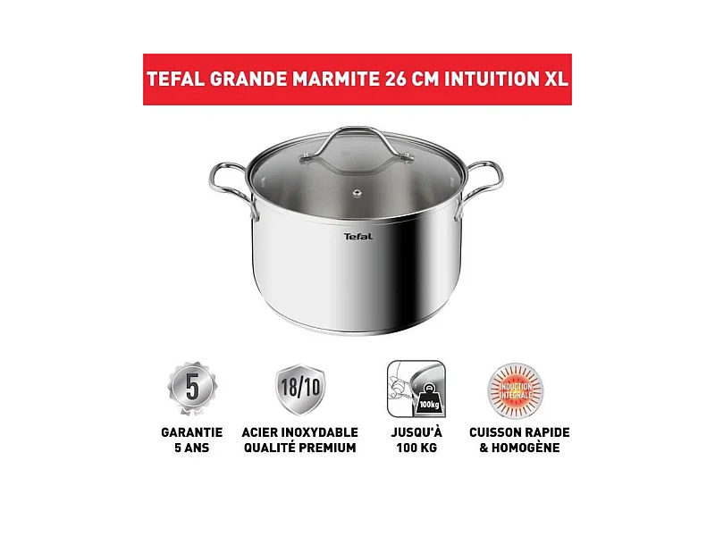 TEFAL B8646404 Marmite 26 cm inox, Tous feux dont induction, Garantie 5 ans, Poignées robustes, Couvercle verre, Intuition XL